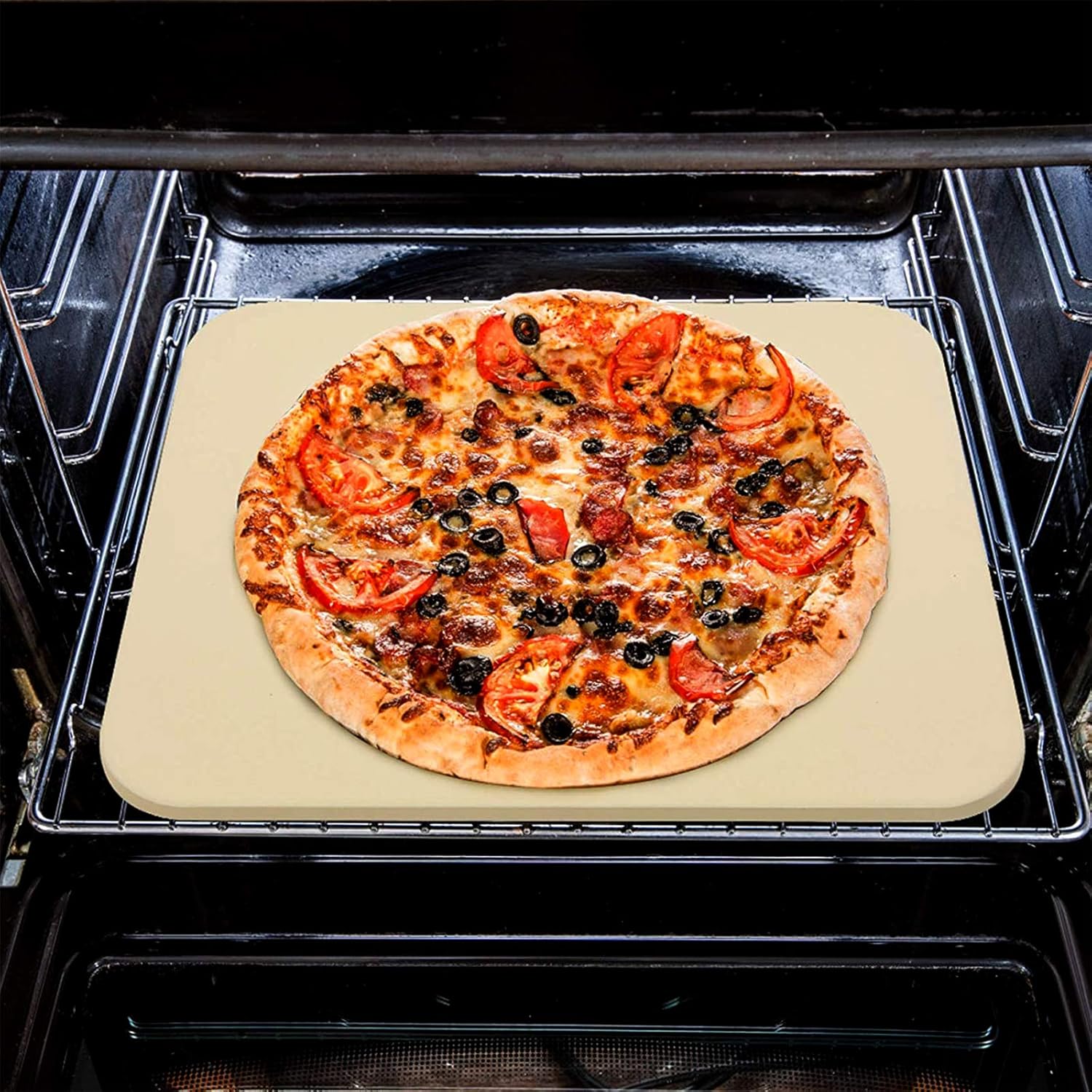 - 【Cordierite Stone Creates Convection Baking To Enhance Taste】- Made of cordierite stone, which has super high temp resistance (up to 2200℉), absorbs moisture from the pizza to make an evenly cooked, delectably crispy crust pizza with no soggy centers! It provides a heat-directing barrier between flame and pizza, retains the heat, allowing it to circulate around the food with airflow, creates a convection baking effect, prevents charring and burning, enhances the taste and tenderness of food.