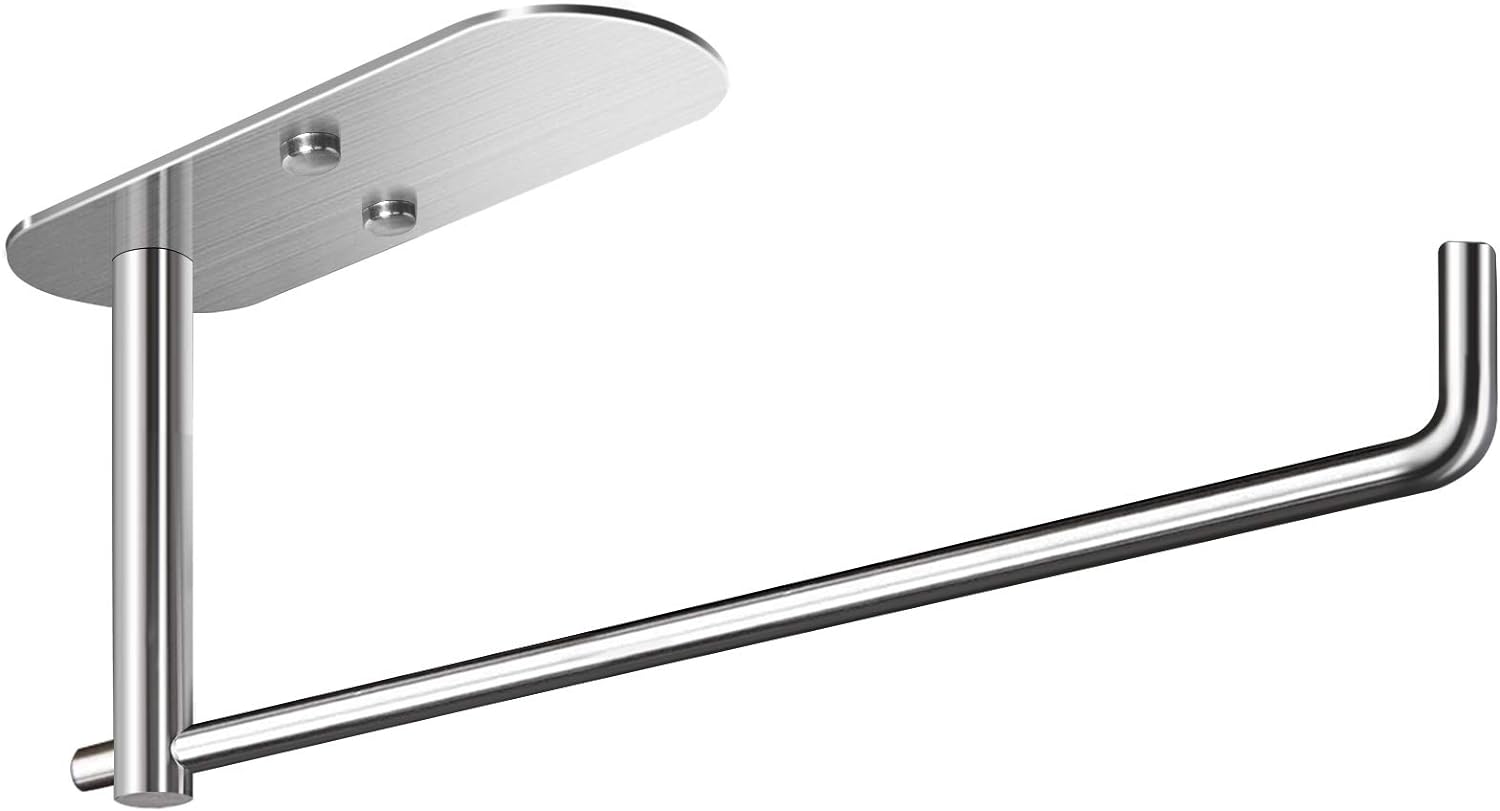 VAEHOLD Self Adhesive Paper Towel Holder Under Cabinet Mount, Wall Mounted Paper Towel Roll Holder for Kitchen, Bathroom, Wall - SUS304 Stainless Steel (Silver)