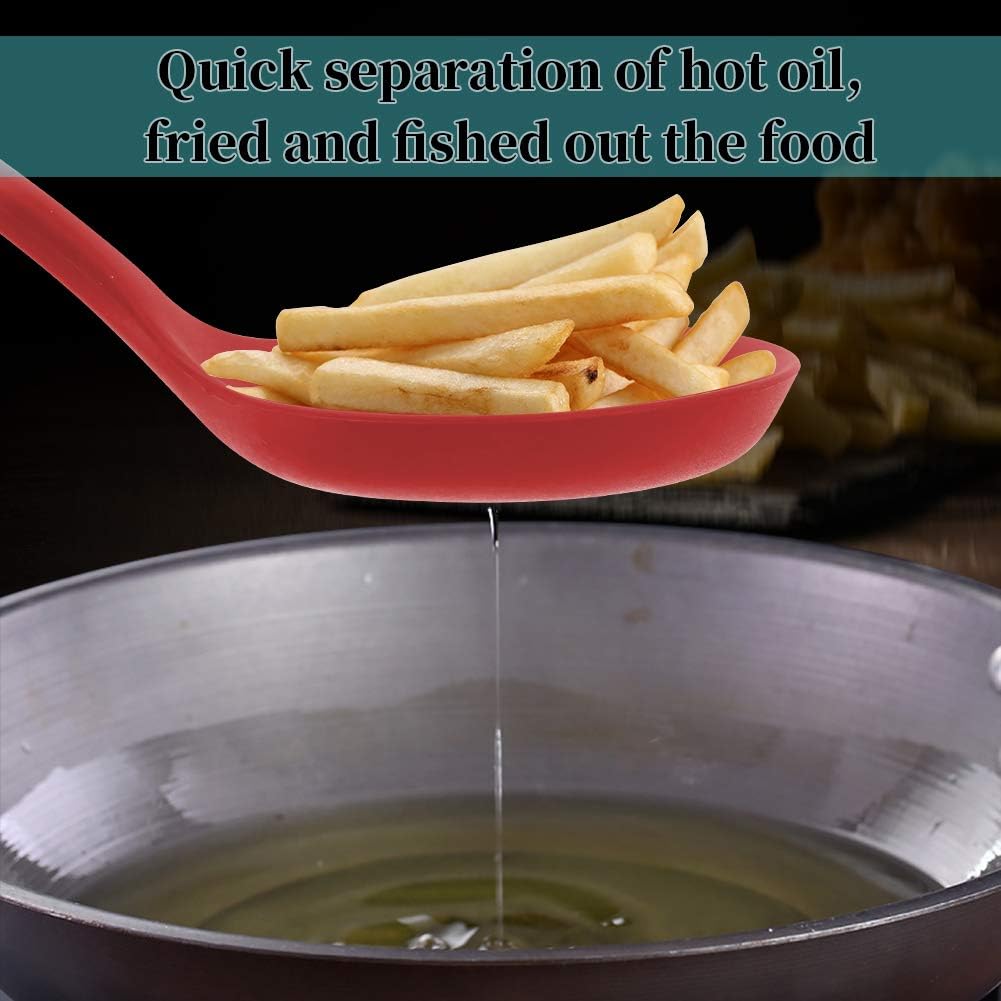 77L Slotted Spoon, Heatproof Skimmer Strainer Slotted Spoon, Seamless One-Piece Non-Stick Cooking Silicone Scoop Ladle with Ergonomic Handle for filter Vegetable, Pasta and More (Red)