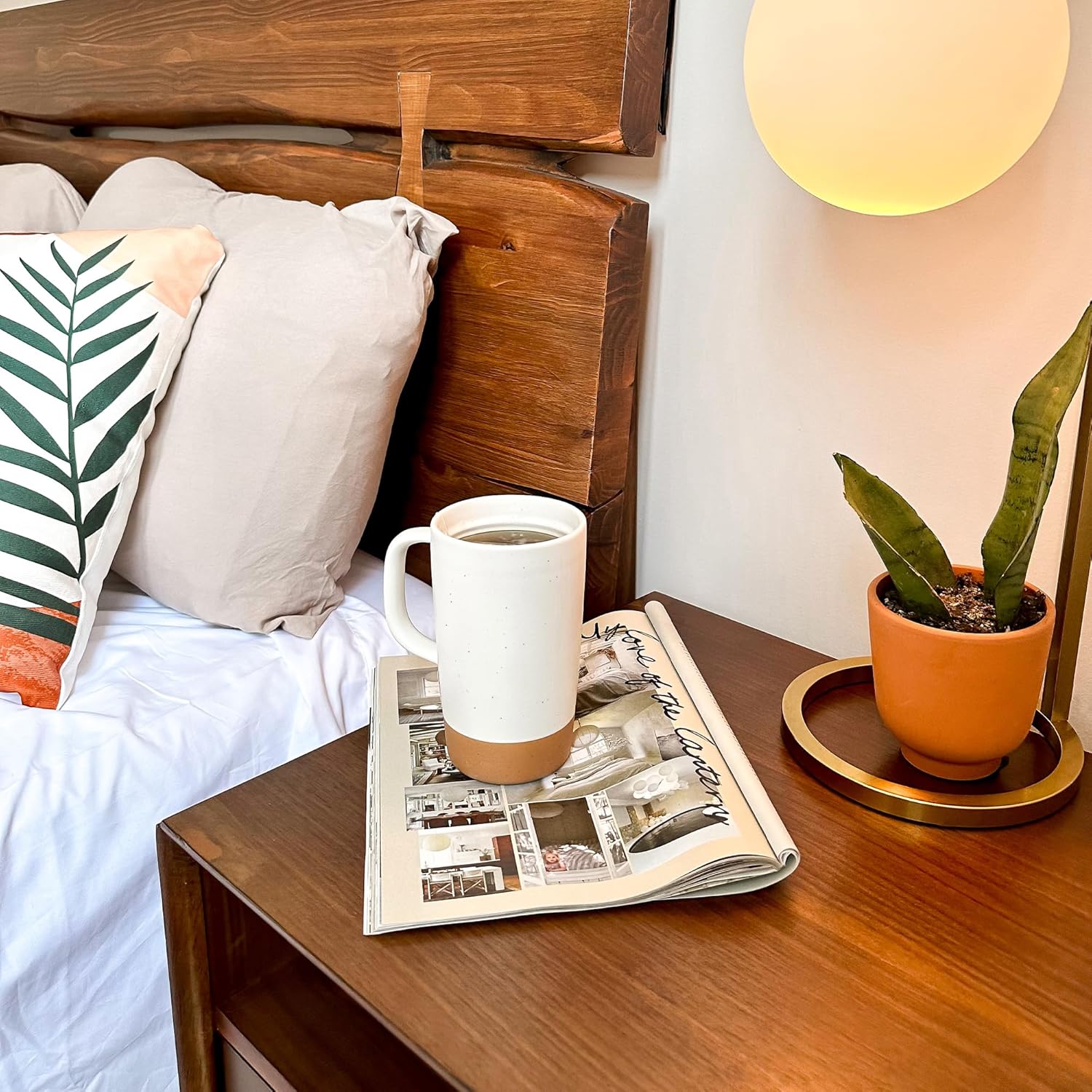 Mora Ceramics Large Tea Mug with Loose Leaf Infuser and Ceramic Lid, 18 oz, Portable, Microwave and Dishwasher Safe, Tall Coffee Cup - Rustic Matte Ceramic Glaze, Modern Herbal Tea Strainer, Cotton