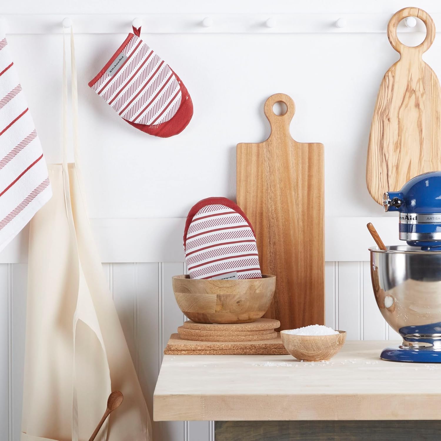 - SET OF TWO β Shield your hands while handling hot cookware. This set includes two (2) Kitchen Aid Albany Mini Mitts, each measuring 5.5" W x 8" L.