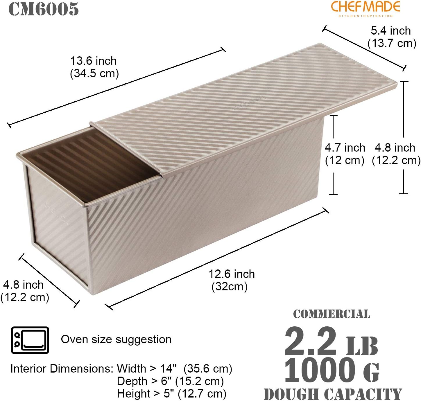 - π[Upgrade Commercial Pullman Pan]:External Size: 13.6 x 5.4 x 4.8inch ,Interior size:About 12.6x4.8x4.7inch ,Weight: 2.2lbs.