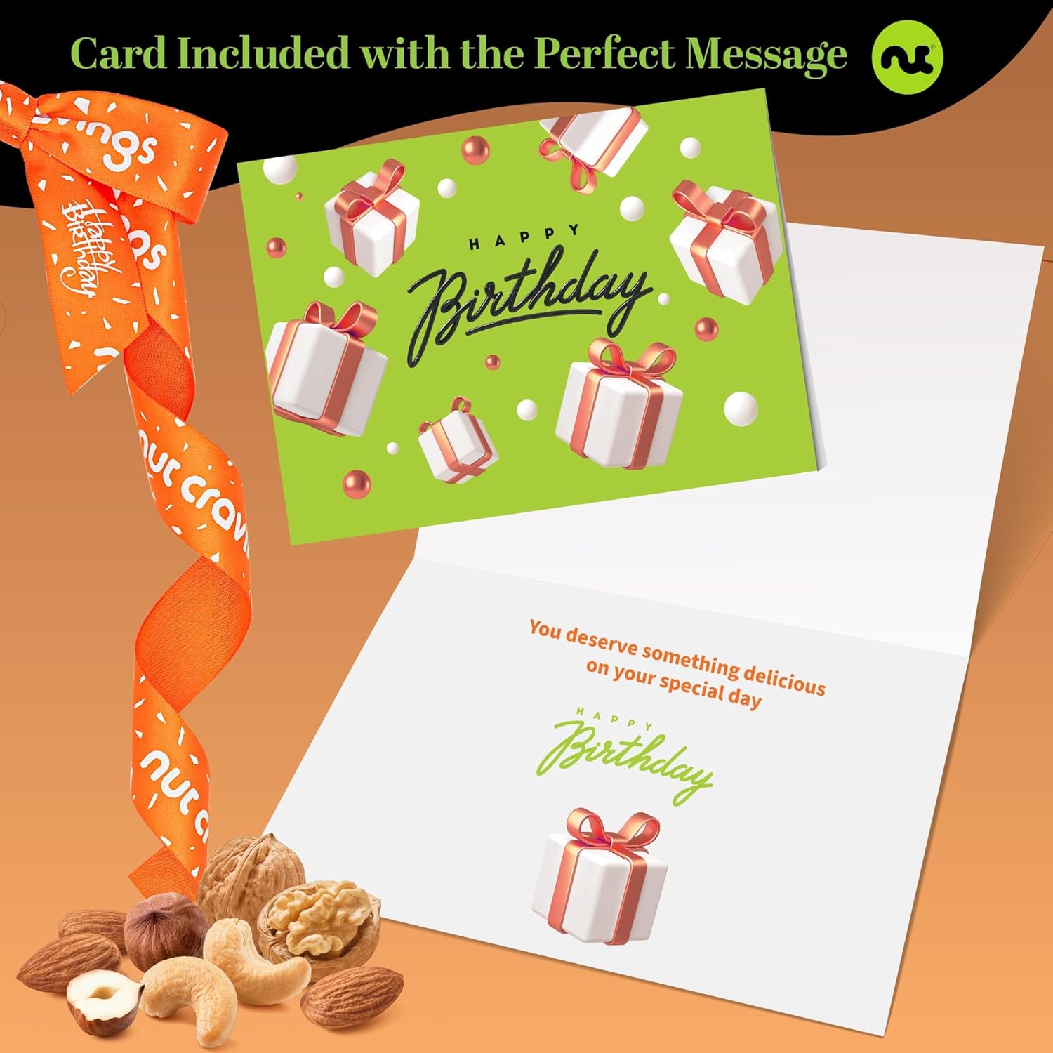NUT CRAVINGS Gourmet Collection - Happy Birthday Treats, Nuts Gift Basket with Bday Ribbon in Reusable Wooden Tray (12 Assortments) Food Arrangement, Healthy Snack Care Package, Food Assortments