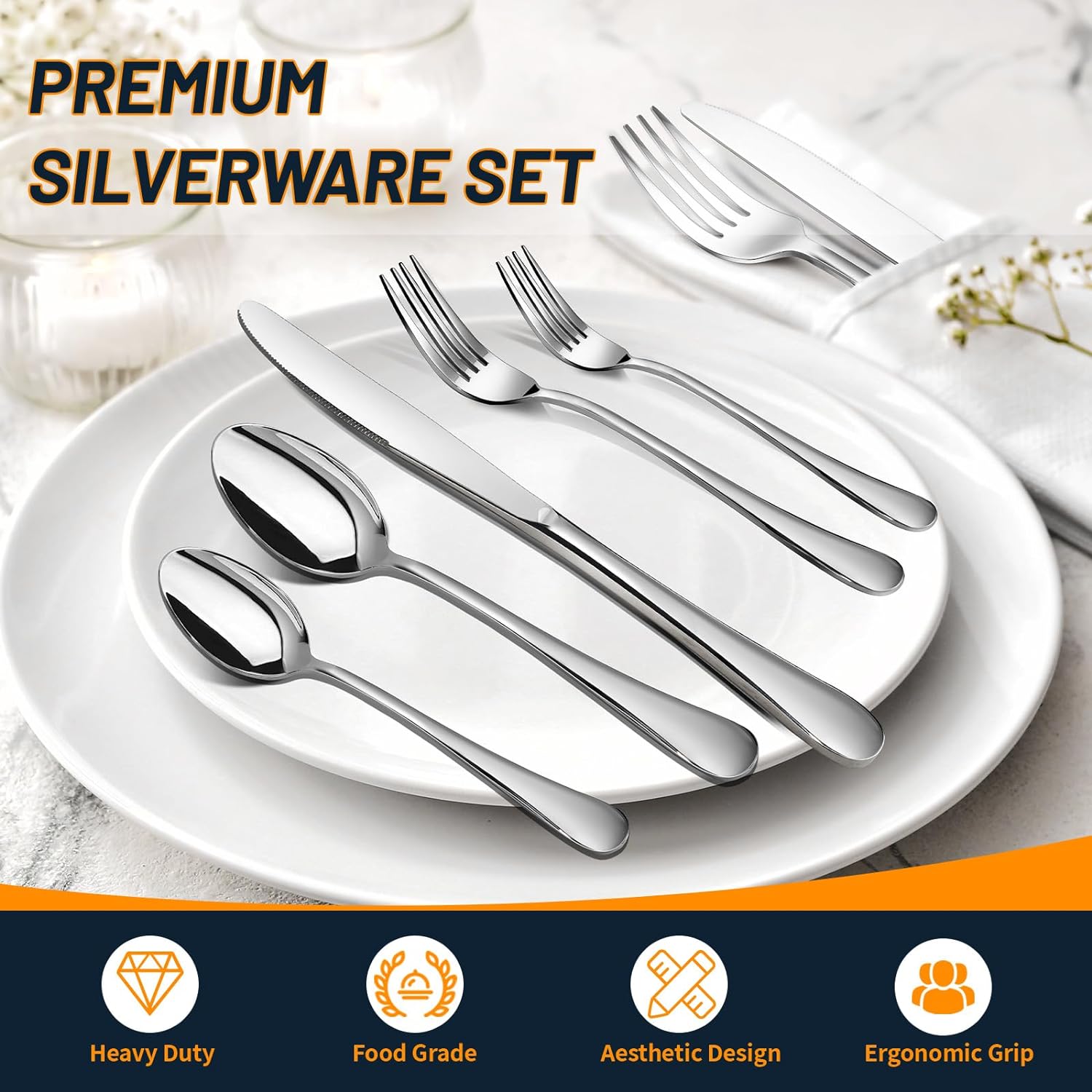 Silverware Set, 40 Piece Stainless Steel Cutlery Sets for 8, Heavy Duty Flatware, Mirror Polished Forks Spoons and Knives Set, Reusable Utensils for Home Kitchen, Dishwasher Safe