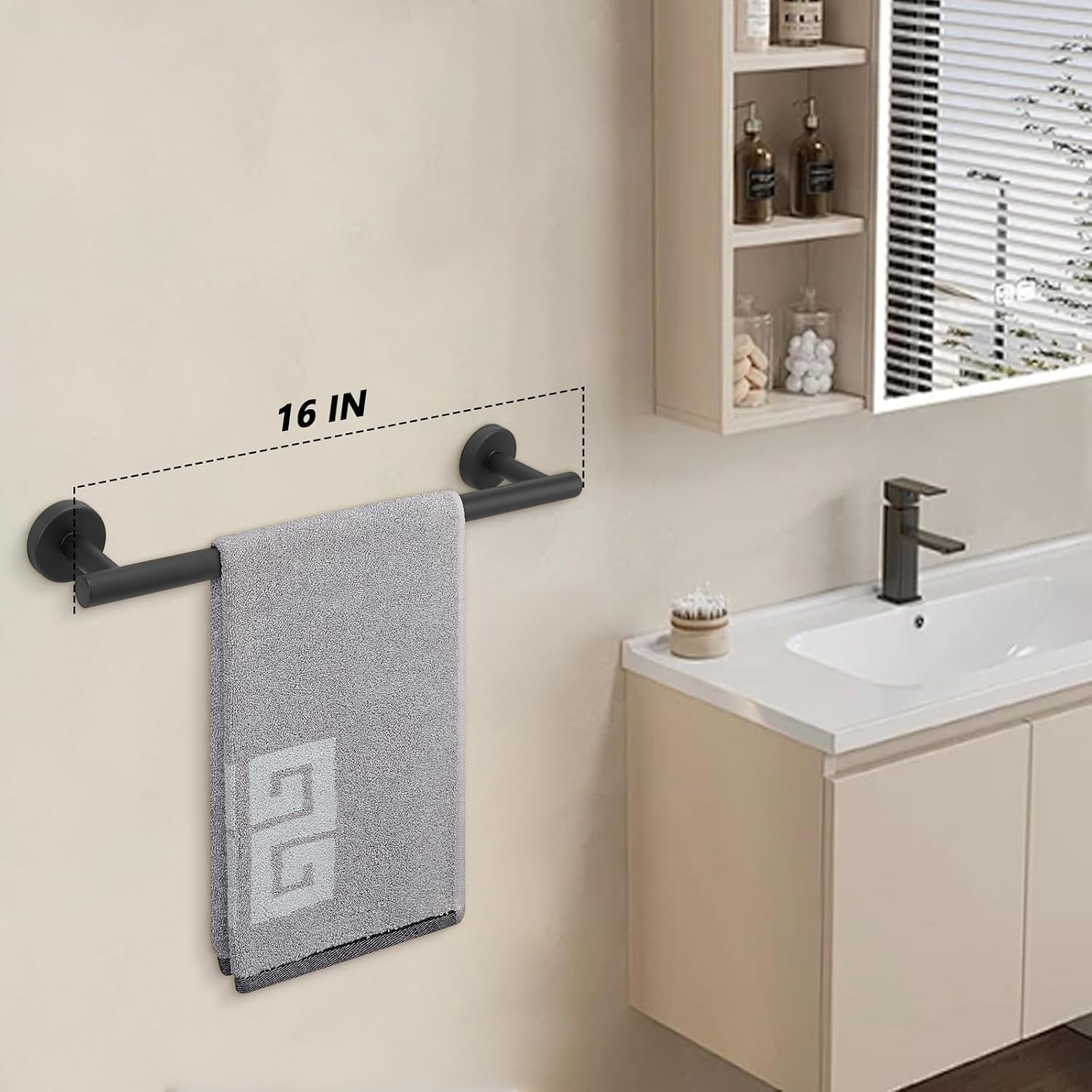 NearMoon Bath Towel Bar, Bath Accessories Thicken Stainless Steel Shower Towel Rack for Bathroom, Towel Holder Wall Mounted (1 Pack, Matte Black, 16 Inch)