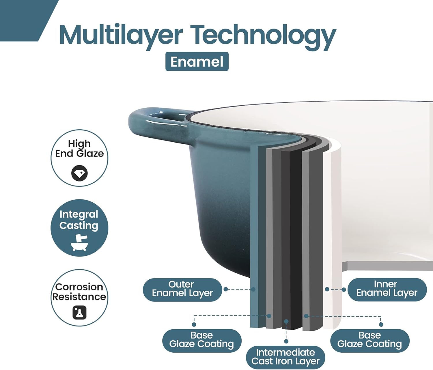 - Suitable for 3-5 people: The 3.5 quart enamel Dutch oven is the choice for cooking food and desserts. Its design makes your food look more delicious