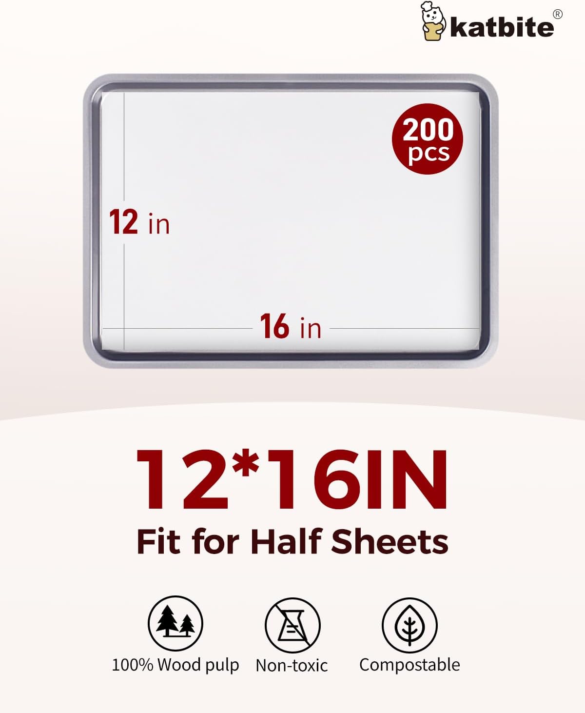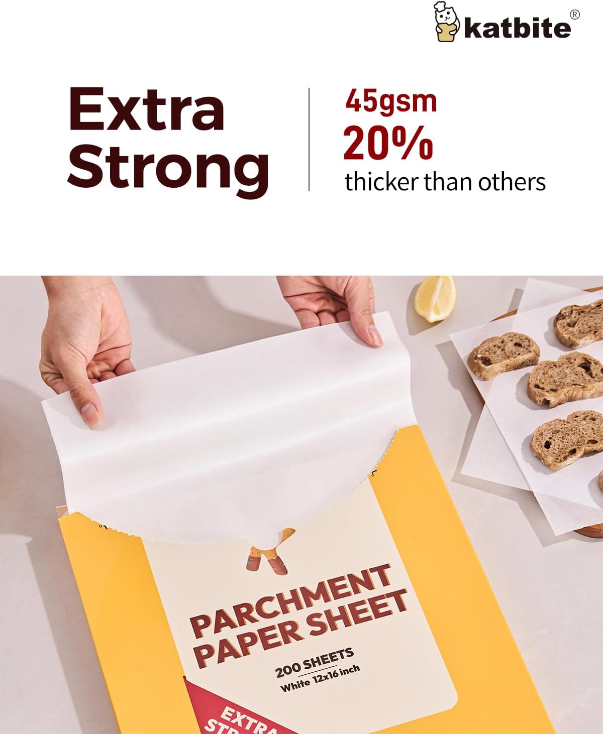 Katbite 200PCS 12x16 In Heavy Duty Flat Parchment Paper, Parchment Paper Sheets for Baking Cookies, Cooking, Frying, Air Fryer, Grilling Rack, Oven(12x16 Inch)[Advanced Series]