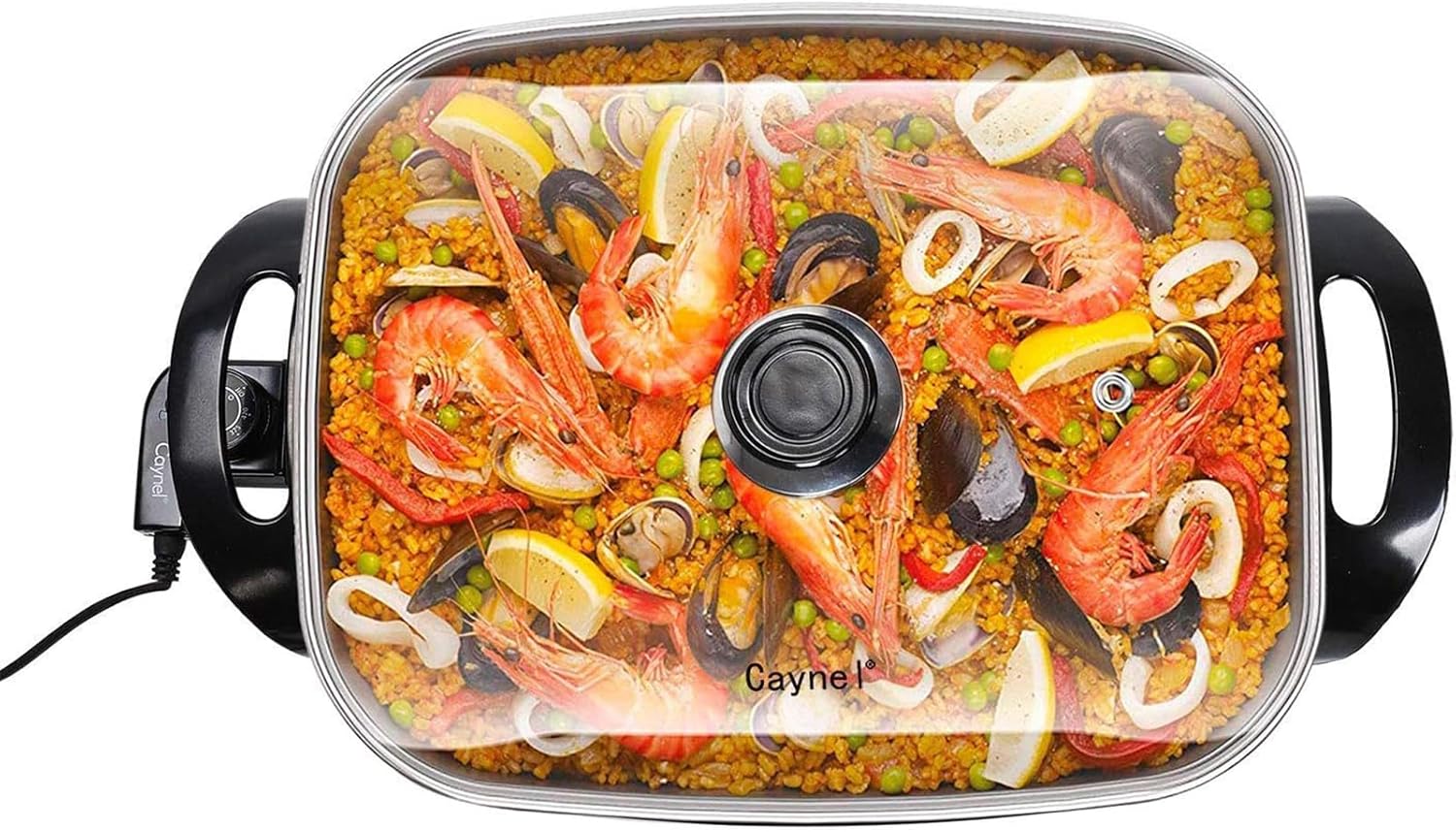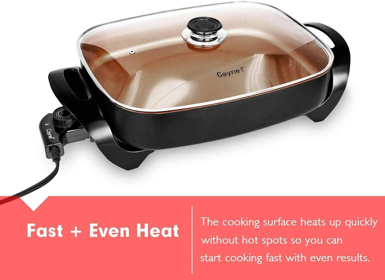 Caynel Professional Non-stick Copper Electric Skillet Jumbo, Deep Dish with Tempered Glass Vented Lid, Upgrade Thermostat, 16”x 12”x 3.15”- 8 quart