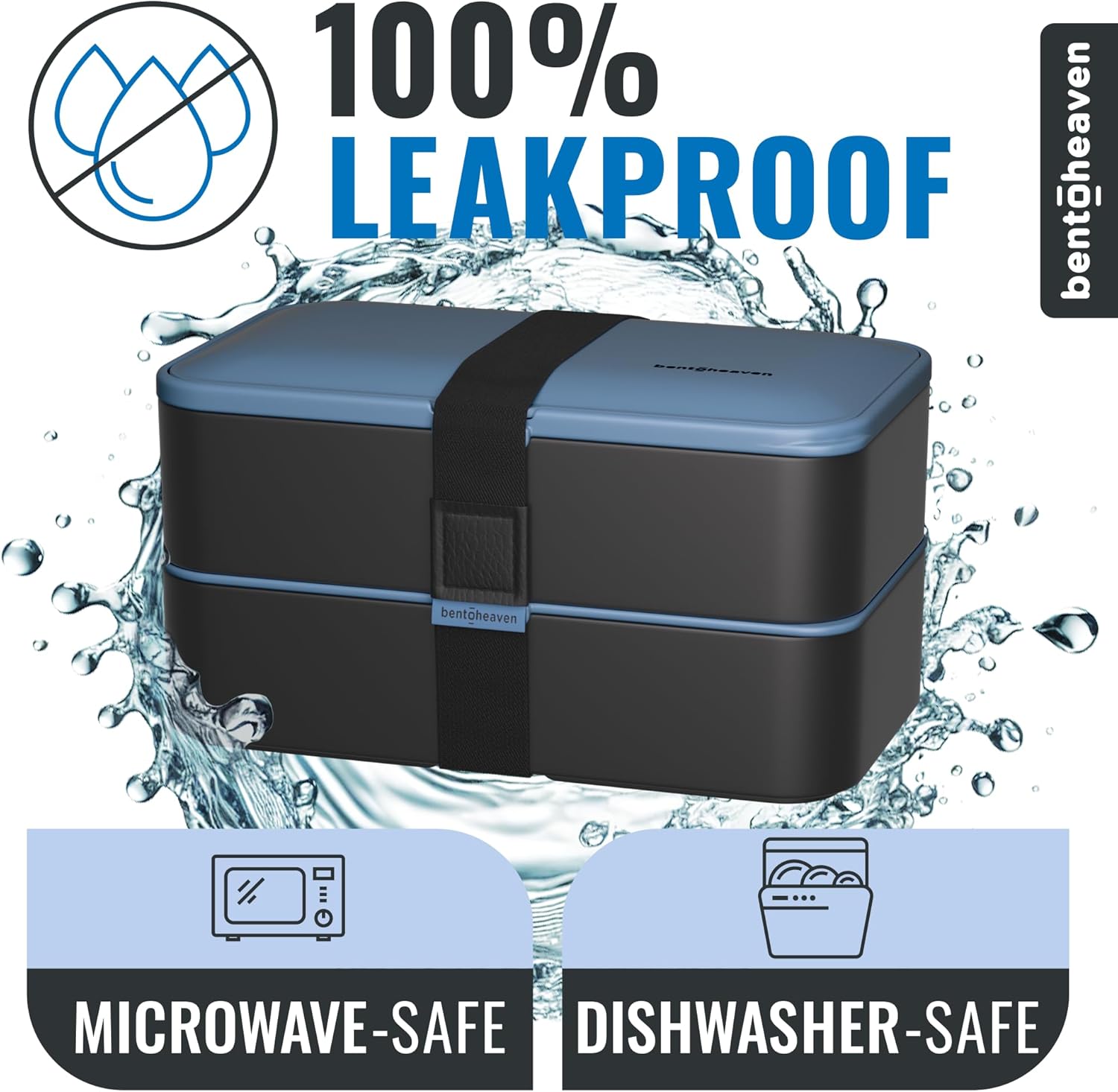 Bentoheaven Premium Bento Box Adult Lunch Box with Compartments for Women & Men, Set of Utensil & Chopsticks & Dip Container, Cute Japanese Kids Bento Lunch Box, Microwavable (Steel My Heart)