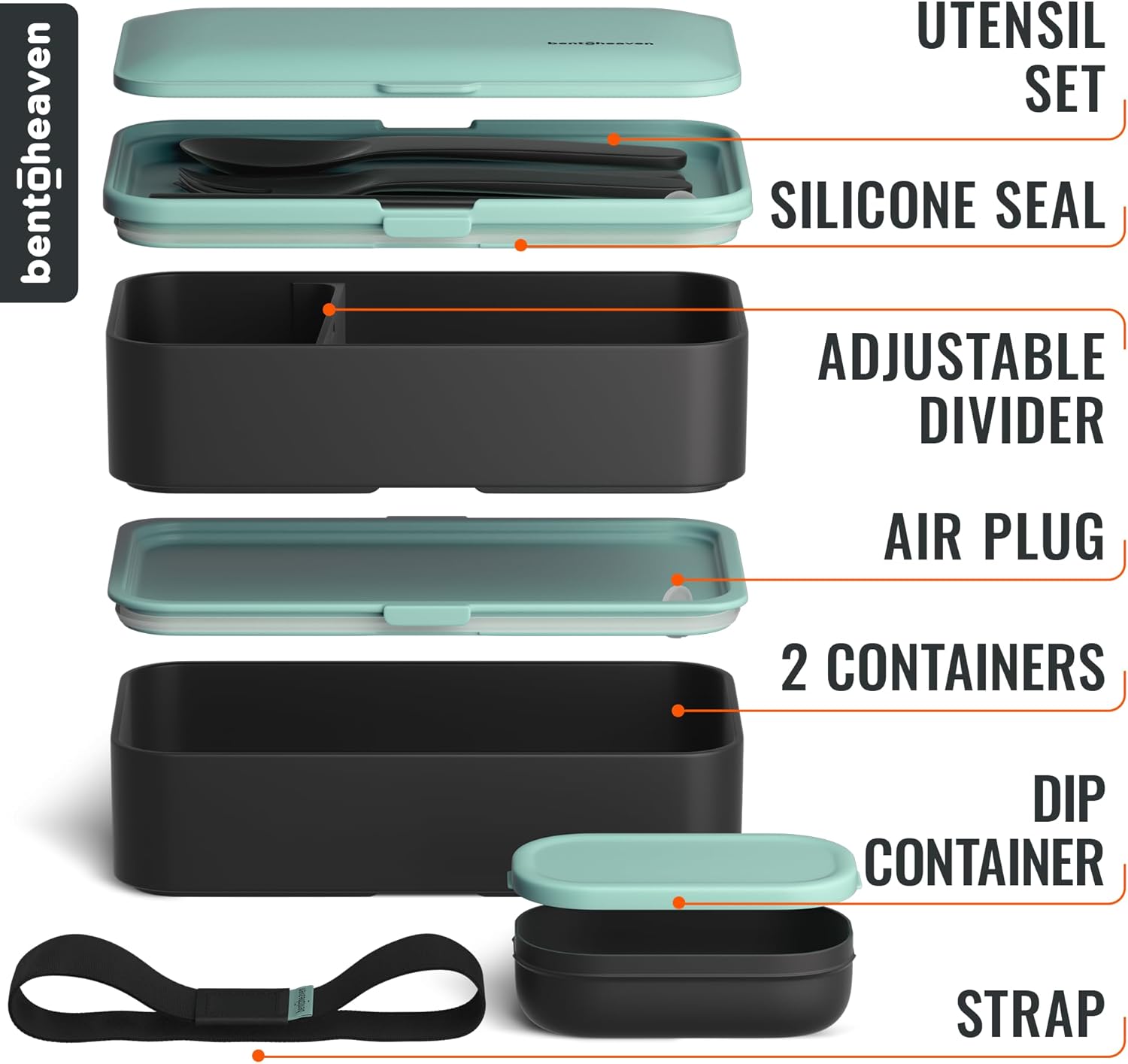 - Leakproof Bento Lunch Box! The Bentoheaven lunch boxโs strong silicone makes it 100% leak-proof, while remaining super easy to open due to the built-in air vent plug.