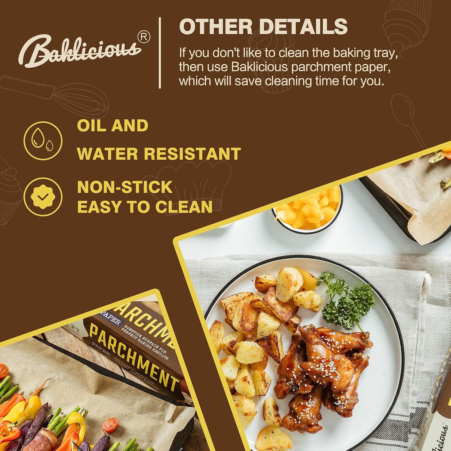 - SUITABLE FOR ANY BAKEWARE: Do you love baking but often bothered by the size deviation between parchment paper and baking tray? Baklicious parchment paper for baking are 15 in x 210 ft, 260 square feet in total. You can crop any size what you want by using baking paper roll.
