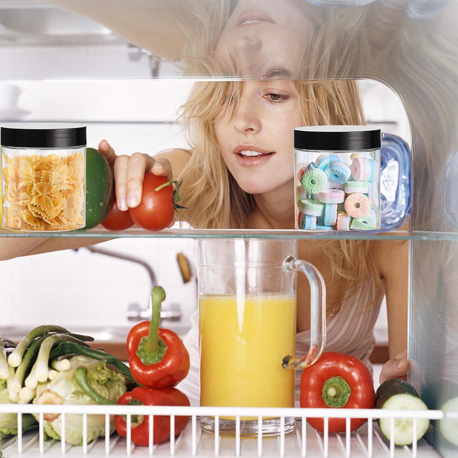 - 【High Quality Material】This plastic jars with lids are made of high quality food grade PET plastic,sturdy,durable,reusable,transparent and lightweight.You can safely use these empty jars to fill your food without worrying about the effects of the jars,these food jars will meet your needs for your food storage,just put your favourite food in it. NOT DISHWASHER SAFE.