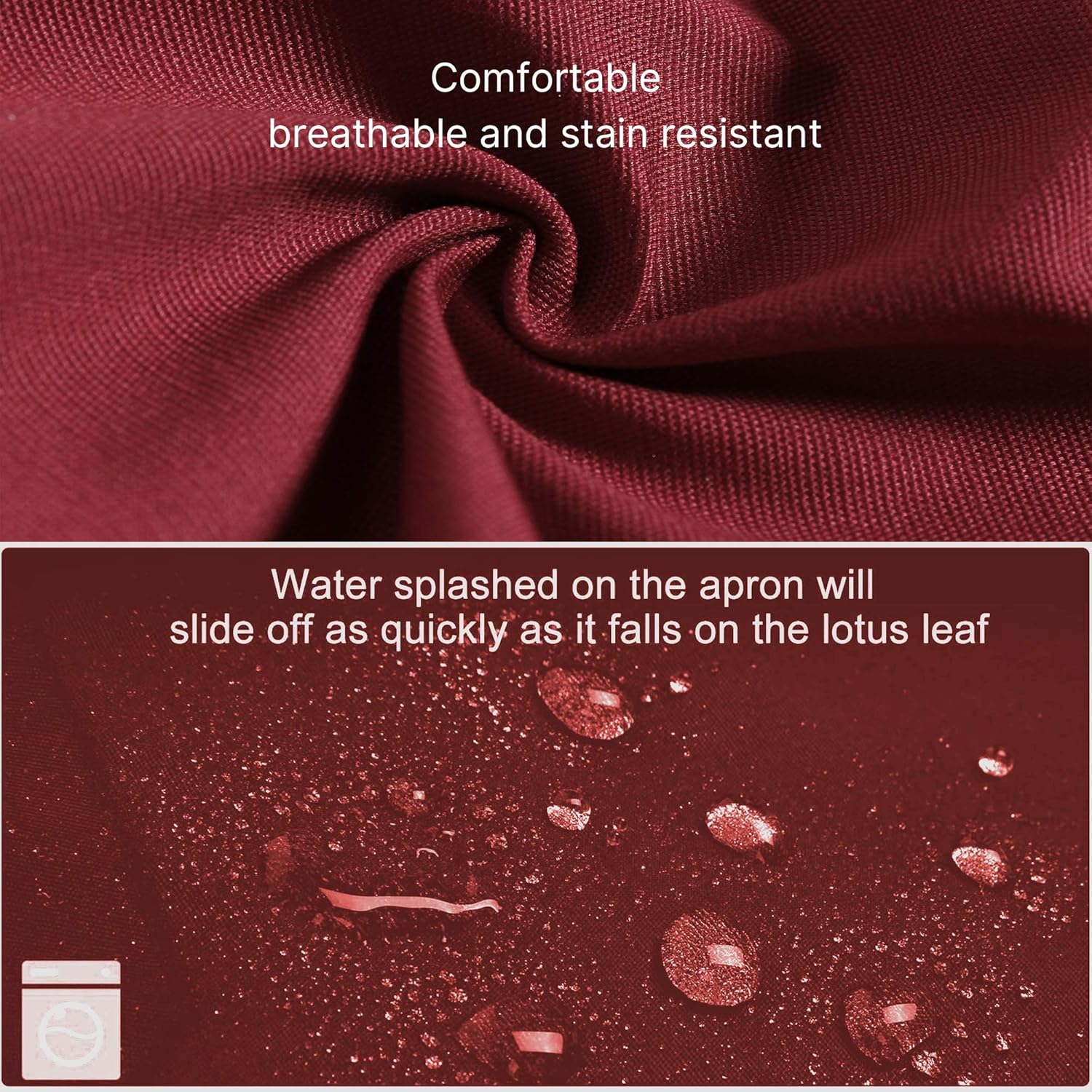 - COZY & Water Drop Resistant - The apron is not only soft, breathable and comfortable to wear, but also has water-resistant feature that enables splashed water to slide off as quickly as it falls on the lotus leaf.