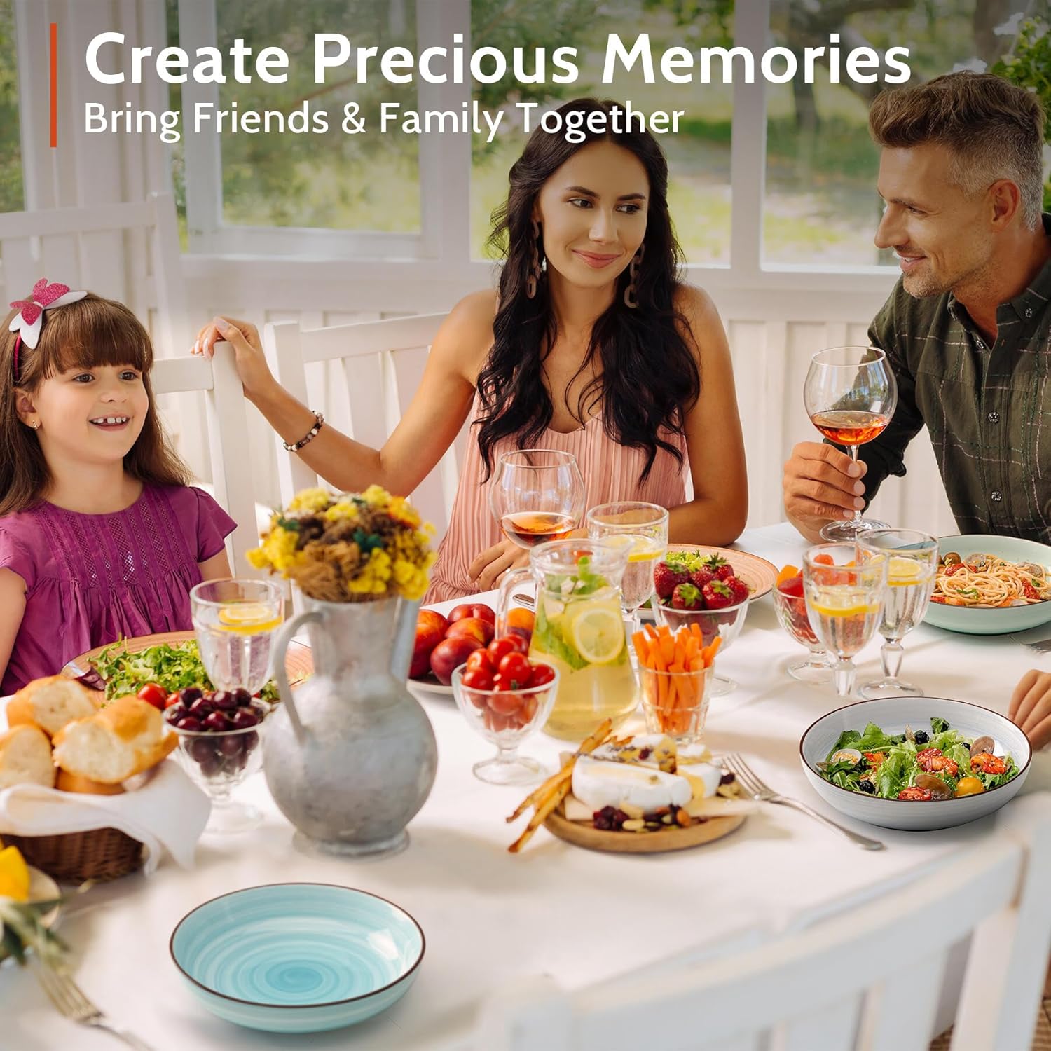 - Colorful & Identify Plates: Sweese pasta bowls set of 6 equipped with different colors. The ceramic plates and bowls set are freely chosen according to the preferences of family members, not only making the food more delicious but also making them happy and having a warm family dinner.