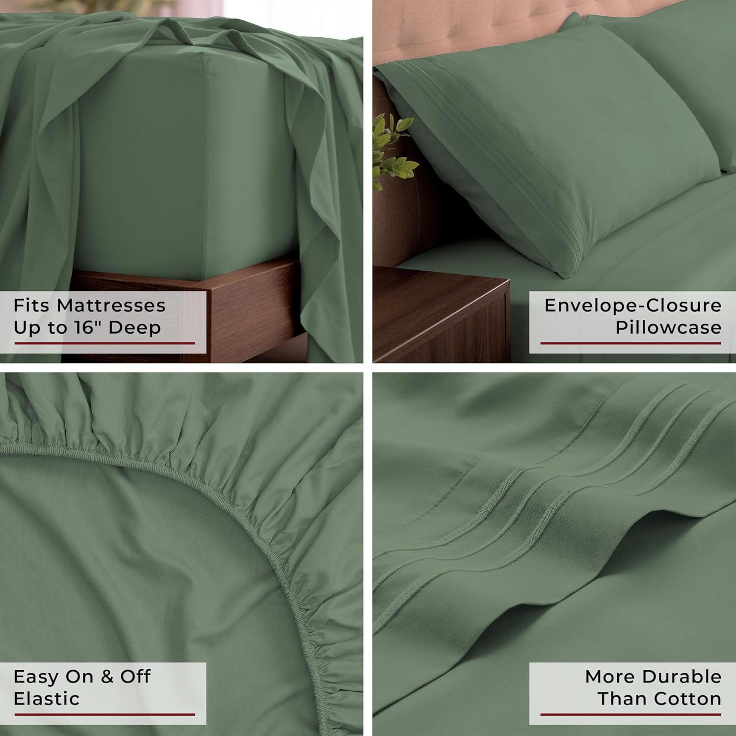 Mellanni California King Sheets Set - 4 PC Iconic Collection Bedding - Hotel Luxury, Extra Soft, Cooling Bed Sheets - Wrinkle, Fade, Stain Resistant (Cal King, Sage)