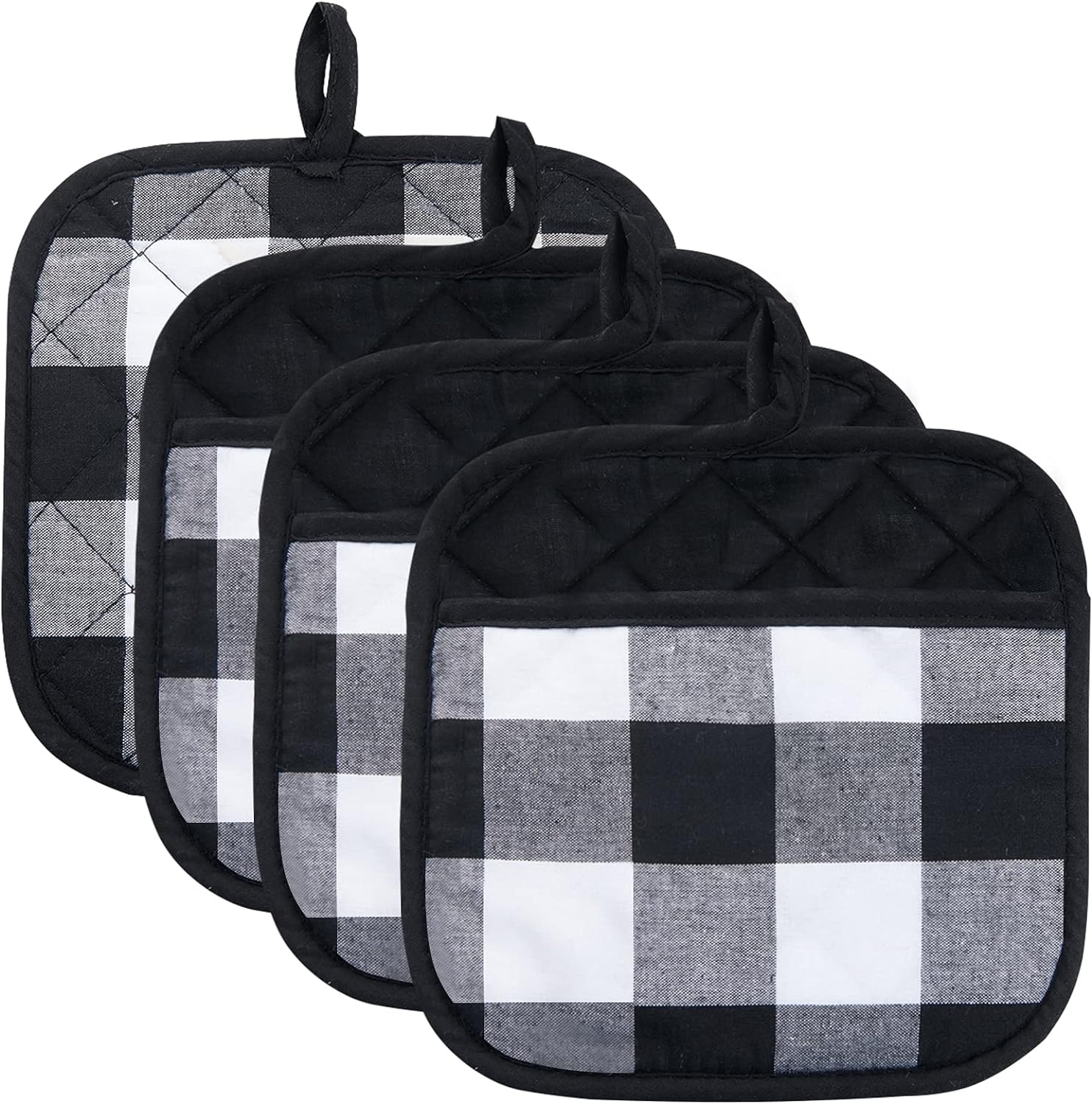 Joyhalo 4 Pack Pot Holders for Kitchen,Cotton Oven Holder with Great Heat Resistance,Non Slip Hot Pads for Kitchen Clearance,Black and White