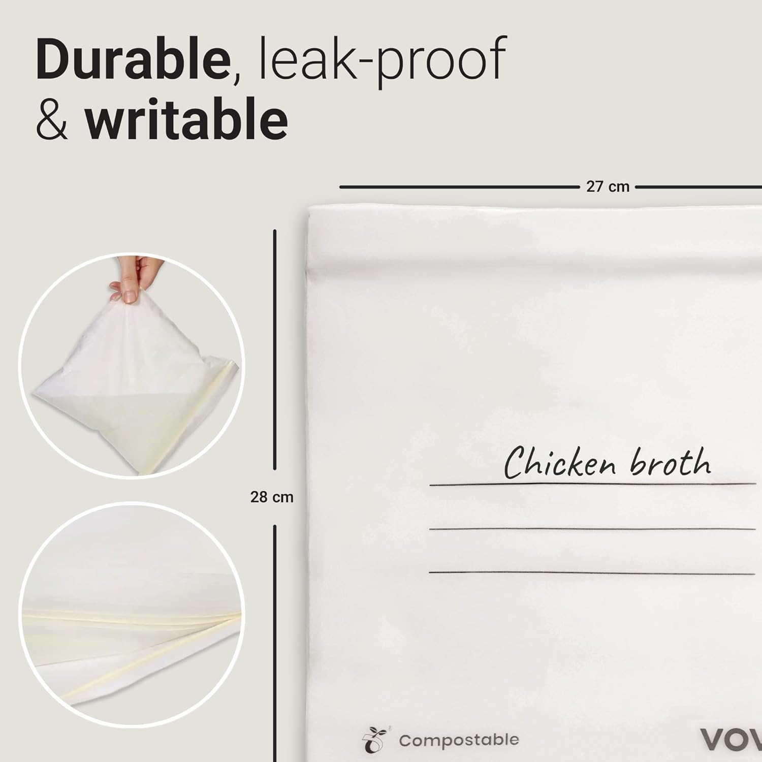 Vove Compostable Zip Bags | 30 Pack Gallon Size (4L) | Biodegradable Storage Bags | PLA PBAT Eco-Friendly | Zero Waste Kitchen Storage | Sustainable Food Bags with Certification