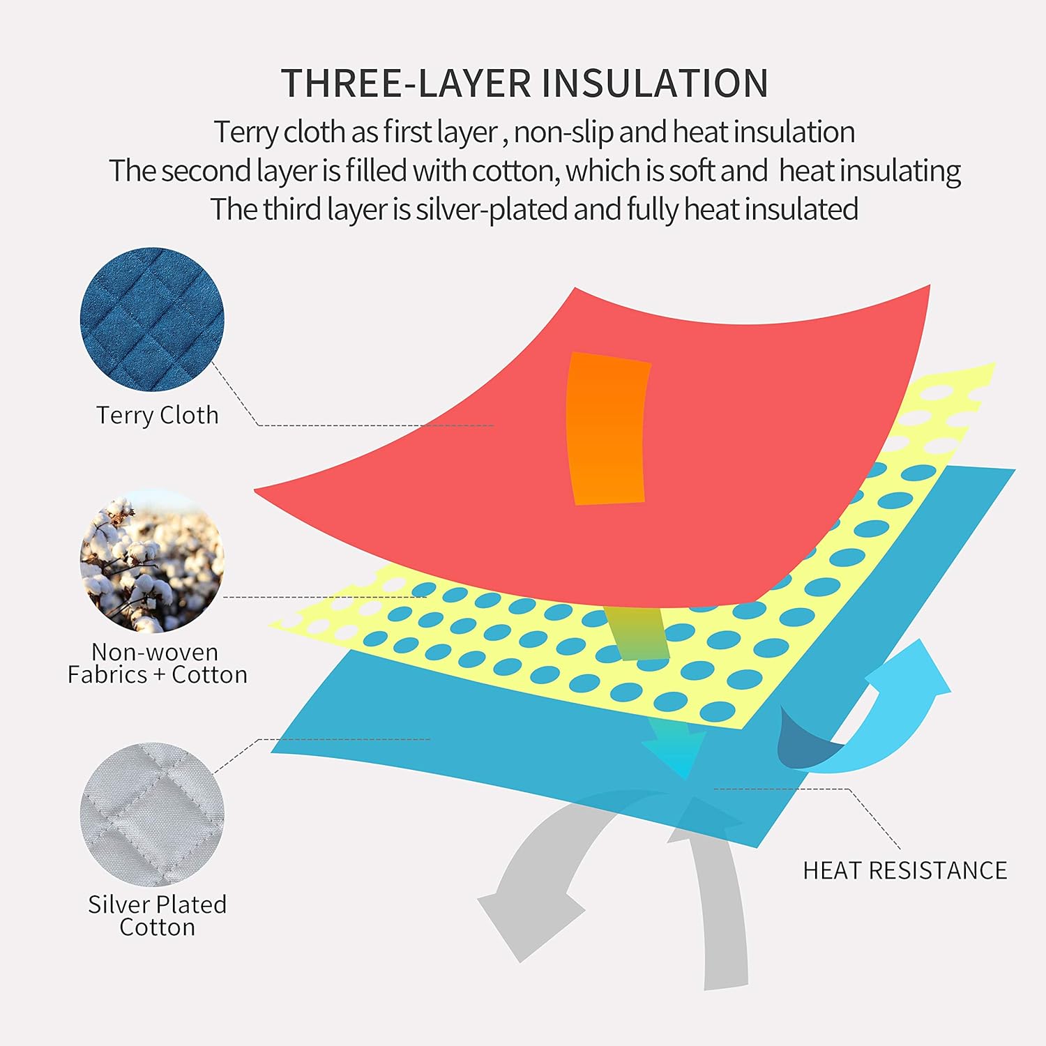 - QUILTED AND PADDED - Heat resistant up to 400 degrees allowing safe removal of baking dishes and cast iron from the oven and hot pots from the stove.