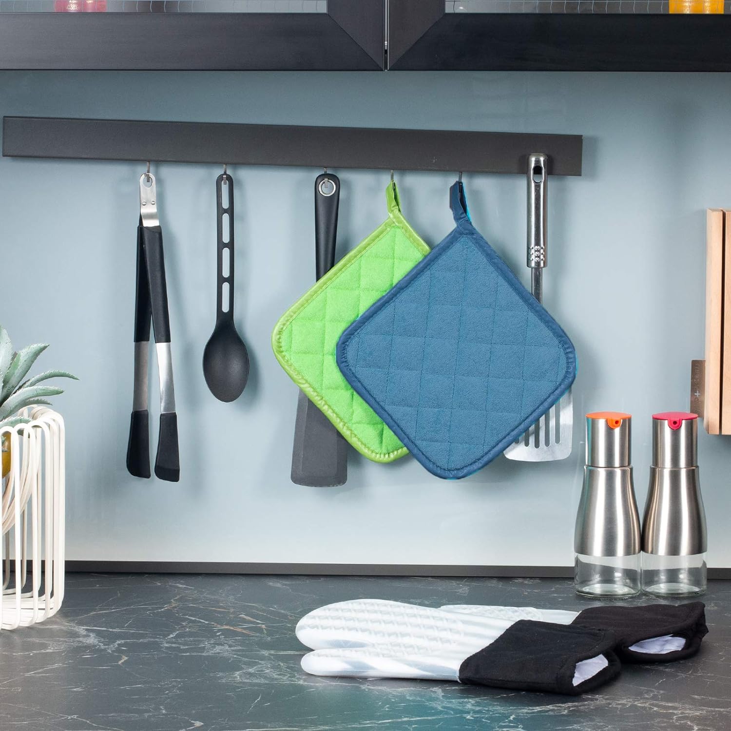 - PROTECT YOU FROM HEAT - The construction of these pot holders for kitchen helps to protect your hands and arms from the heat of the oven. Do not use pot holders in a hot oven or over an open flame.