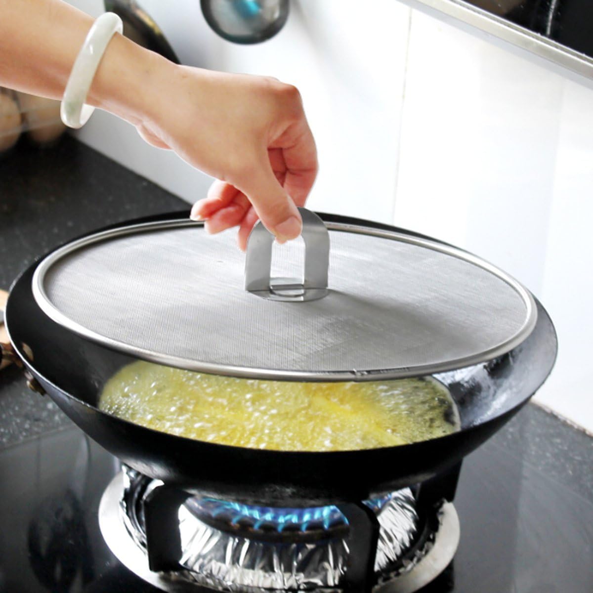 - Humanized Design - The lightweight mesh makes it easy to handle and steam can escape normally. This splatter screen designed with folding handling which can save space in your kitchen. Super convenience design and easy to cook/store.
