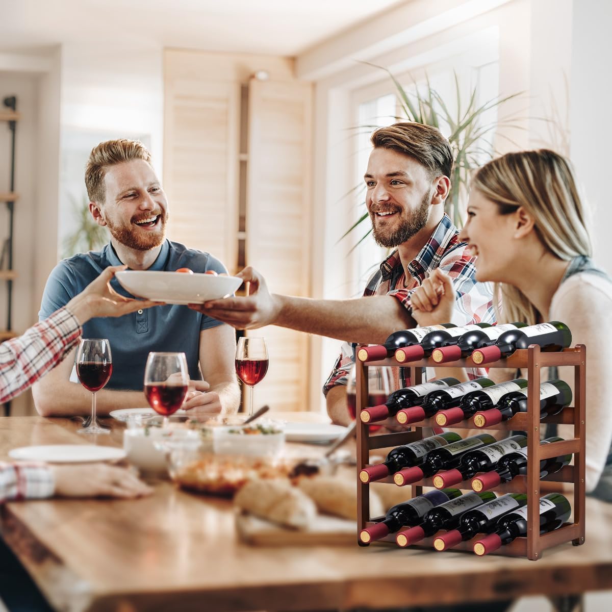 Bamboo Wine Rack,4 Tier, Wine Bottle Holder, Hold 16 Bottles for Home Kitchen, Dinging Room, Pantry, Cabinet, Bar