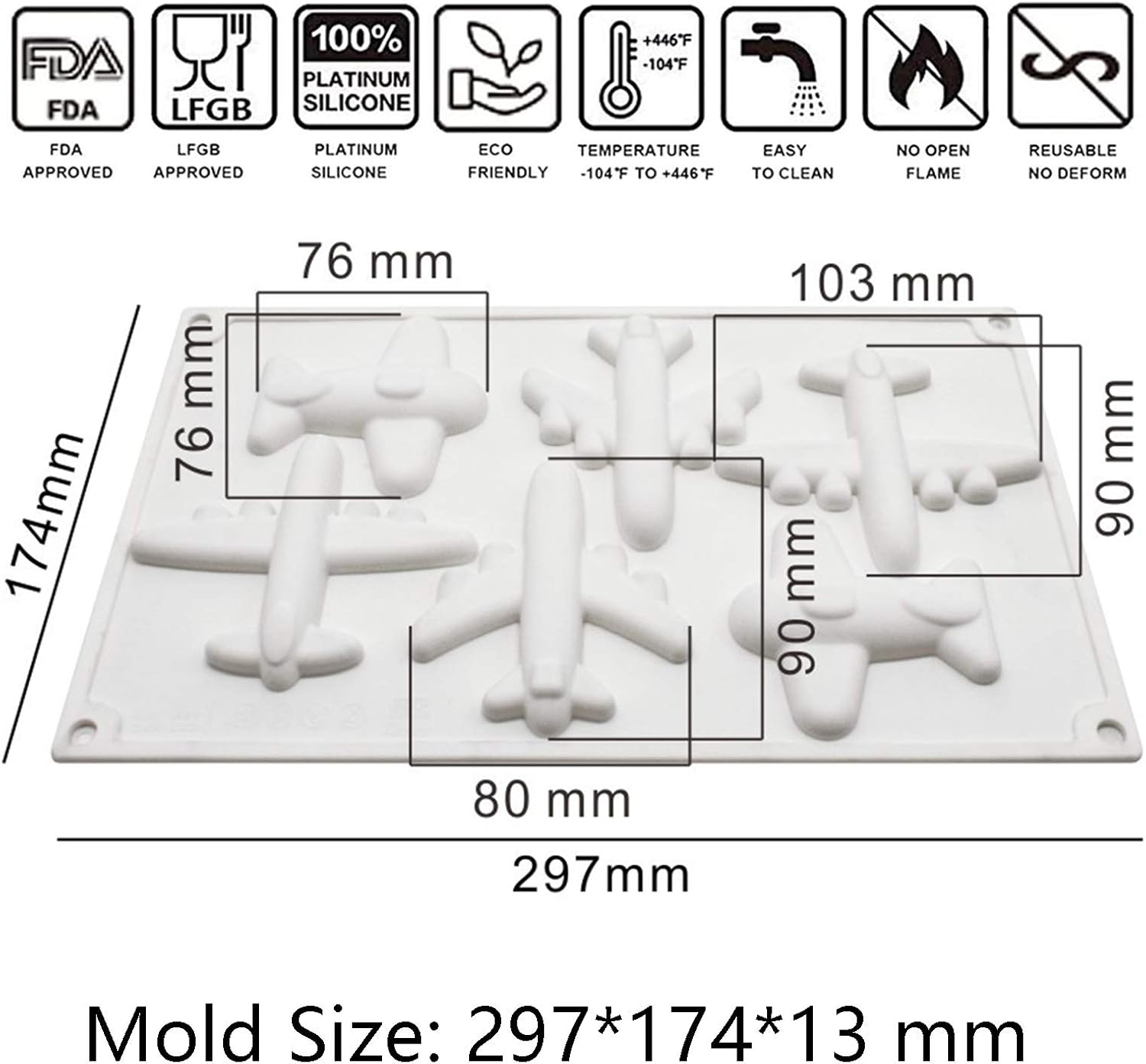 OCPO KITCHEN Airplane Silicone Molds for Baking Mousse Cake, French Dessert, Pastry, Ice Cream, Cake Decoration Mold, 3D Airplane Shape (6-Cavity)