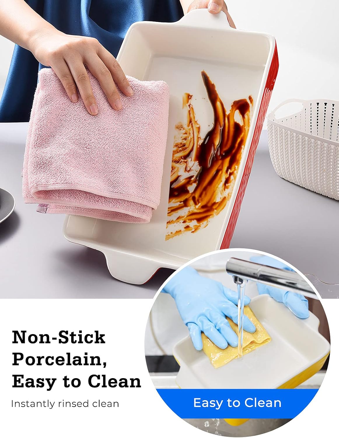 - 【SAFE & EASY TO CLEAN】: The double-handle design effectively insulates heat and makes it easy to hold. The high-quality ceramic baking dish has a smooth glazed surface that is non-stick, so you can simply rinse with water or put it in the dishwasher. It is also safe for ovens, microwaves, dishwashers, can be used safely at 500°F.