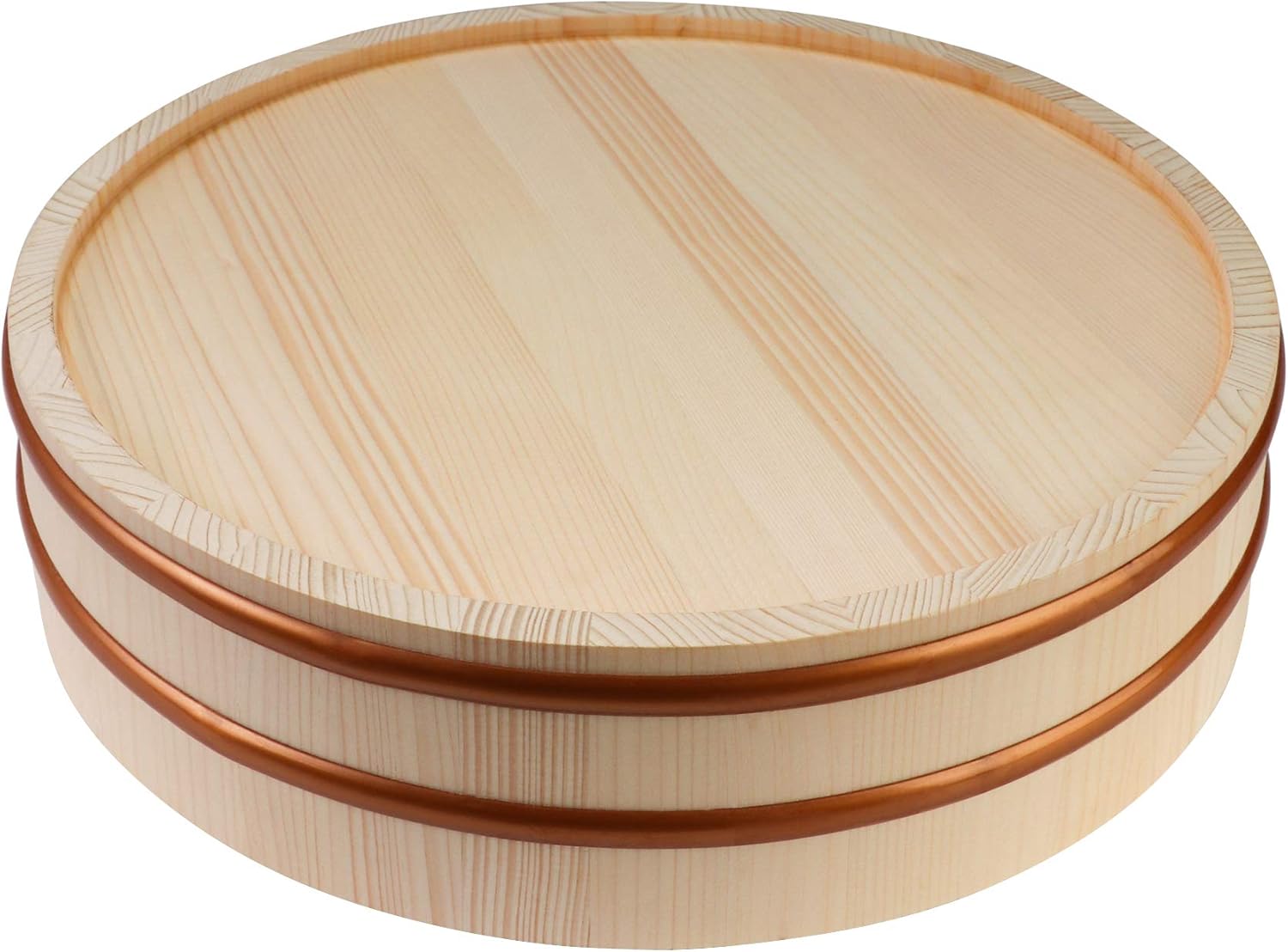 Kichgather Wooden Sushi Rice Bowl with Lid Hangiri Sushi Oke Sushi Rice Mixing Tub (13 “ with lid)