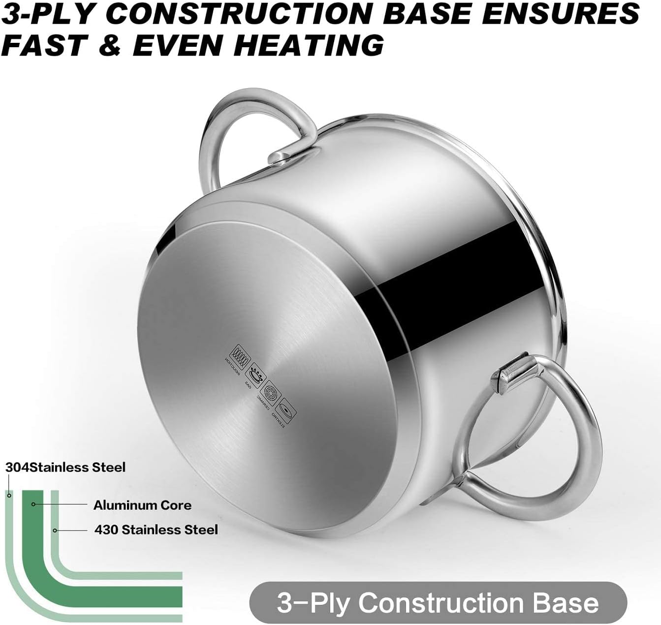 - Warp & Rust Resistant - Thick Full-Clad Body: Built to withstand daily high-heat cooking while keeping its shape and shine. Even heating prevents hot spots and warping. Premium stainless steel resists rust, corrosion, and staining, keeping your pan looking like new for years.