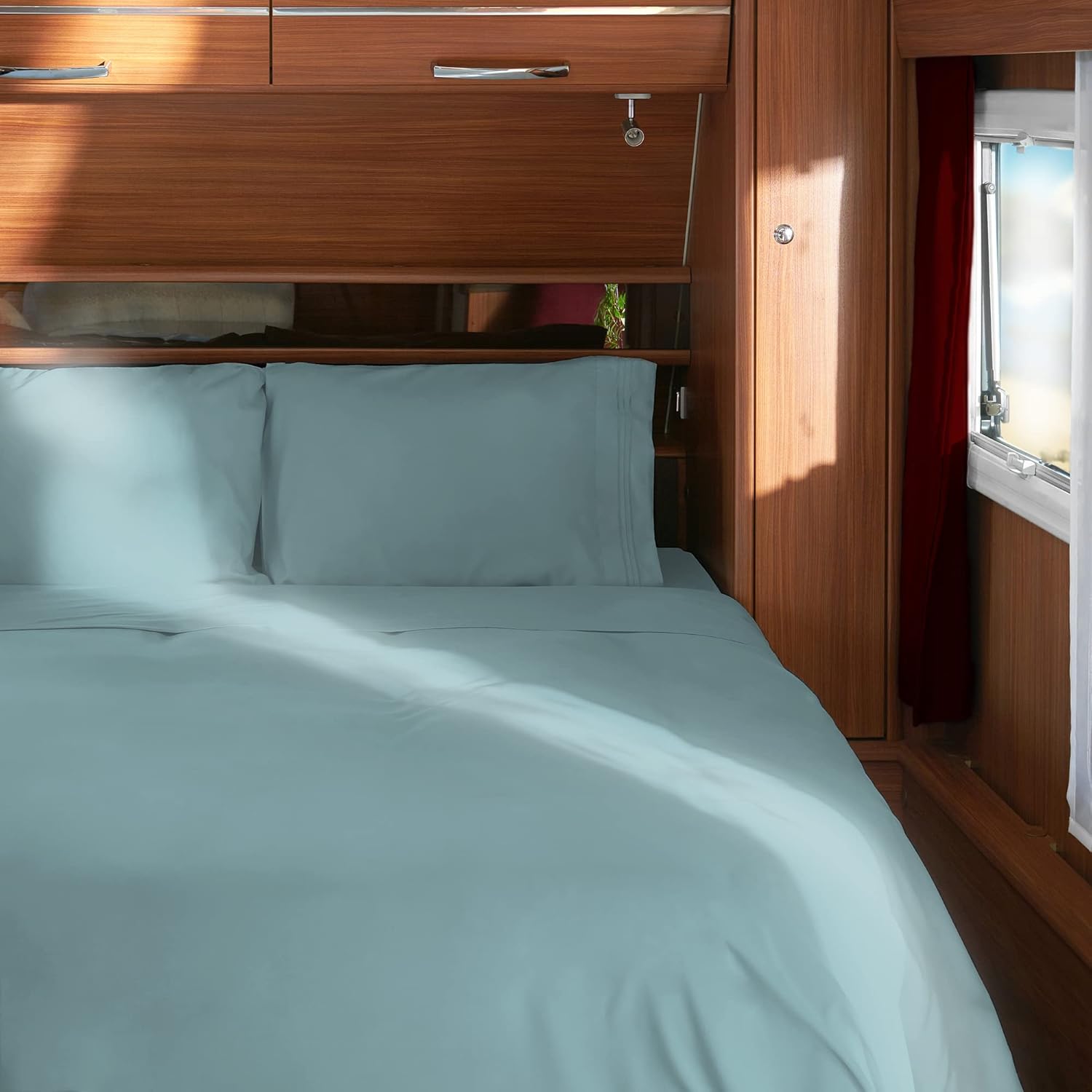 - Highest Quality Double Brushed Microfiber β is silky soft, durable, breathable, pet friendly and long-lasting. Enjoy same comfort on the road as you would in your home. Fabulous color selection will match any decor and Our RV sheets are perfect for your motorhome, camper and travel trailer.