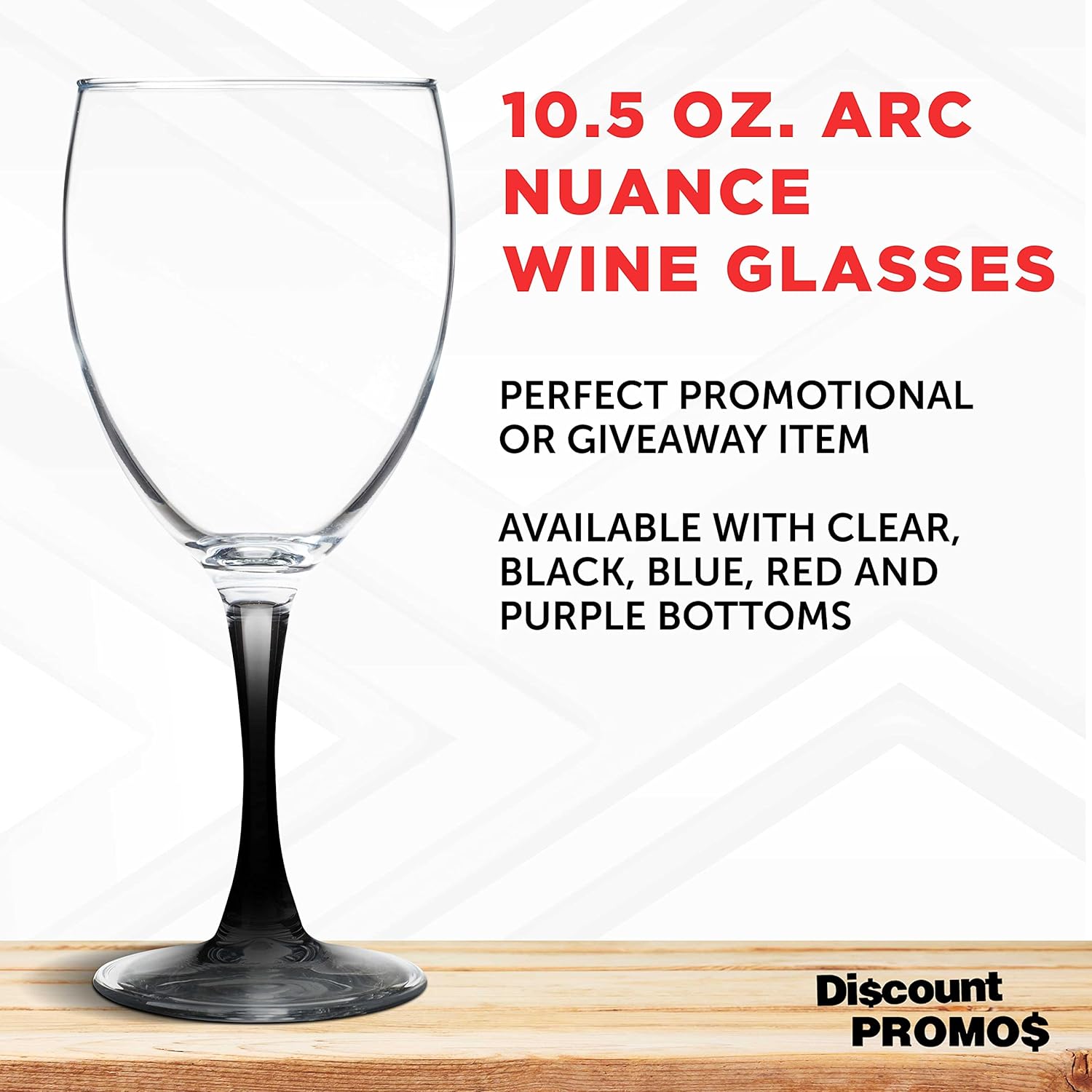 DISCOUNT PROMOS Nuance Wine Glasses by ARC 10.5 oz. Set of 10, Bulk Pack - Restaurant Glassware, Perfect for Red Wine, White Wine, Cocktails - Black