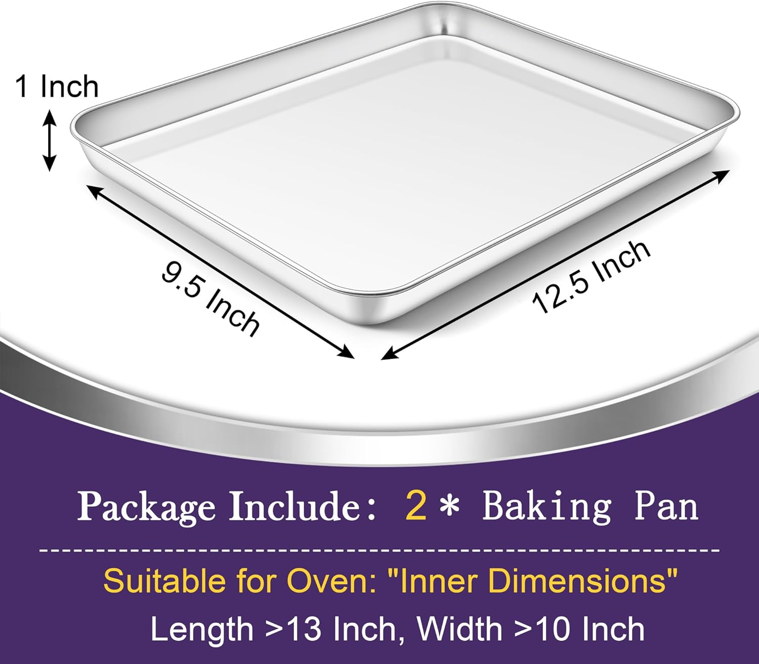 TeamFar Toaster Oven Pan Set of 2, Stainless Steel Toaster Oven Baking Tray Ovenware, 12.5’’x 9.5’’x1’’, Non Toxic & Healthy, Rust Free & Mirror Finish, Easy Clean & Dishwasher Safe