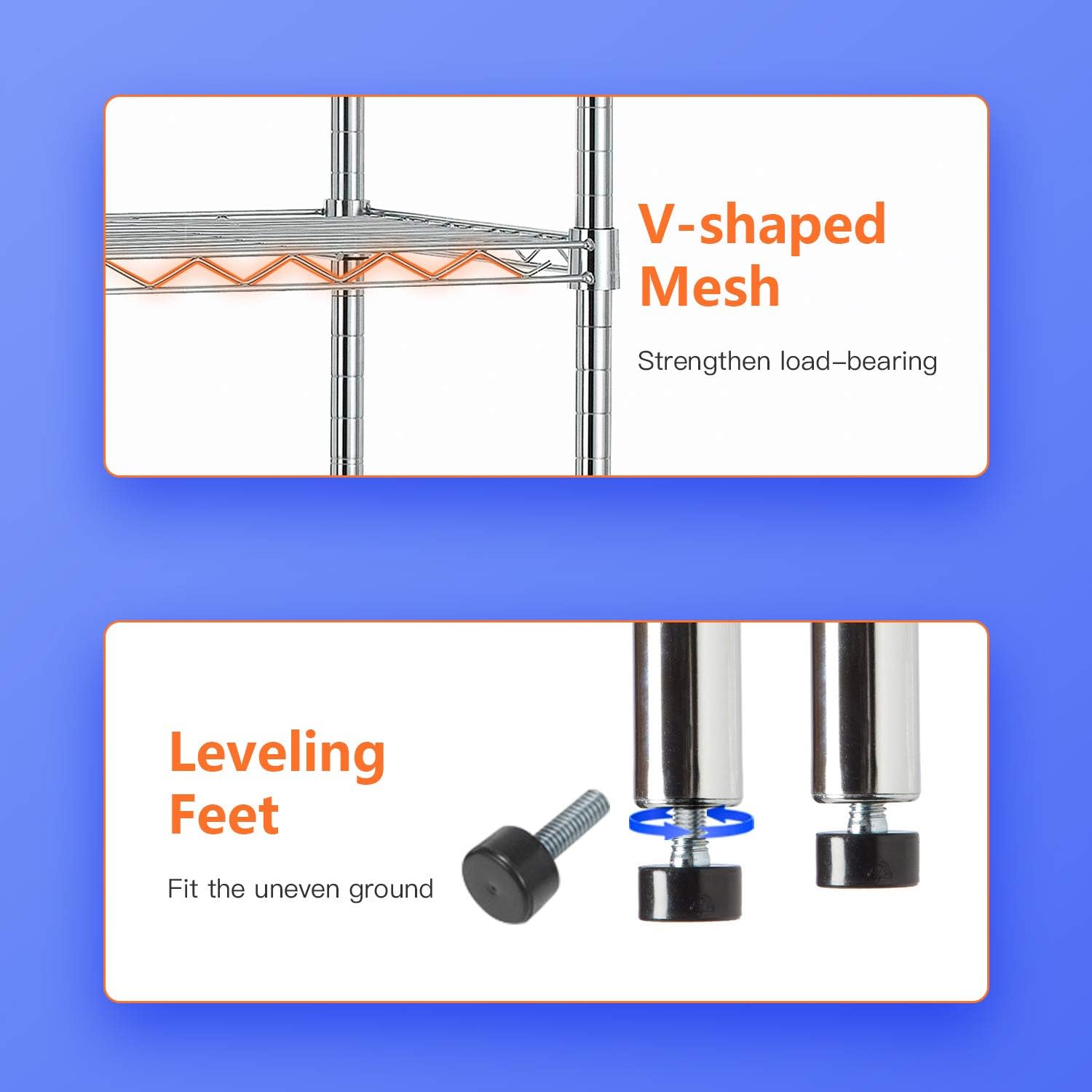 - ✔【Adjustable Height】 Enjoy a completely customizable metal shelving unit. The build allows for height adjustments - giving you the freedom to adjust accordingly to your needs. Comes with easy adjustable clips to secure and stabilize each shelf. The multi-purpose shelf rack is perfect for garage shelving, kitchen storage, pantry shelving, and more.