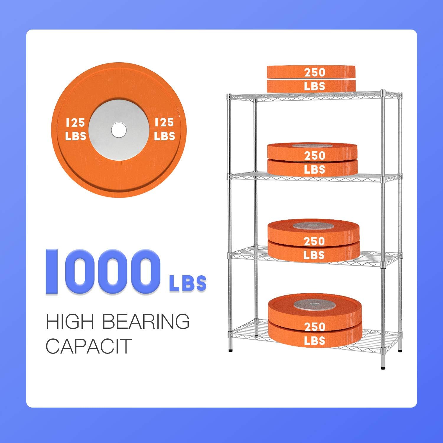 14" D×36" W×54" H Commercial Wire Shelving Unit Metal Shelf with 4 Tier Adjustable Layer Rack Strong Steel for Restaurant Garage Pantry Kitchen Garage,Chrome