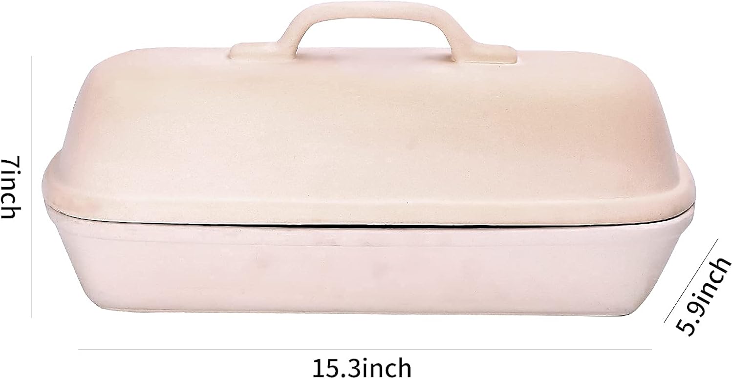 Goodview Household Superstone Covered Baker,Unglazed stoneware bakeware,Square Bread Porcelain Baking Pan,Bakes Italian Bread with Light Crumb and Crusty Crust (15.3 * 5.9 * 7 in)