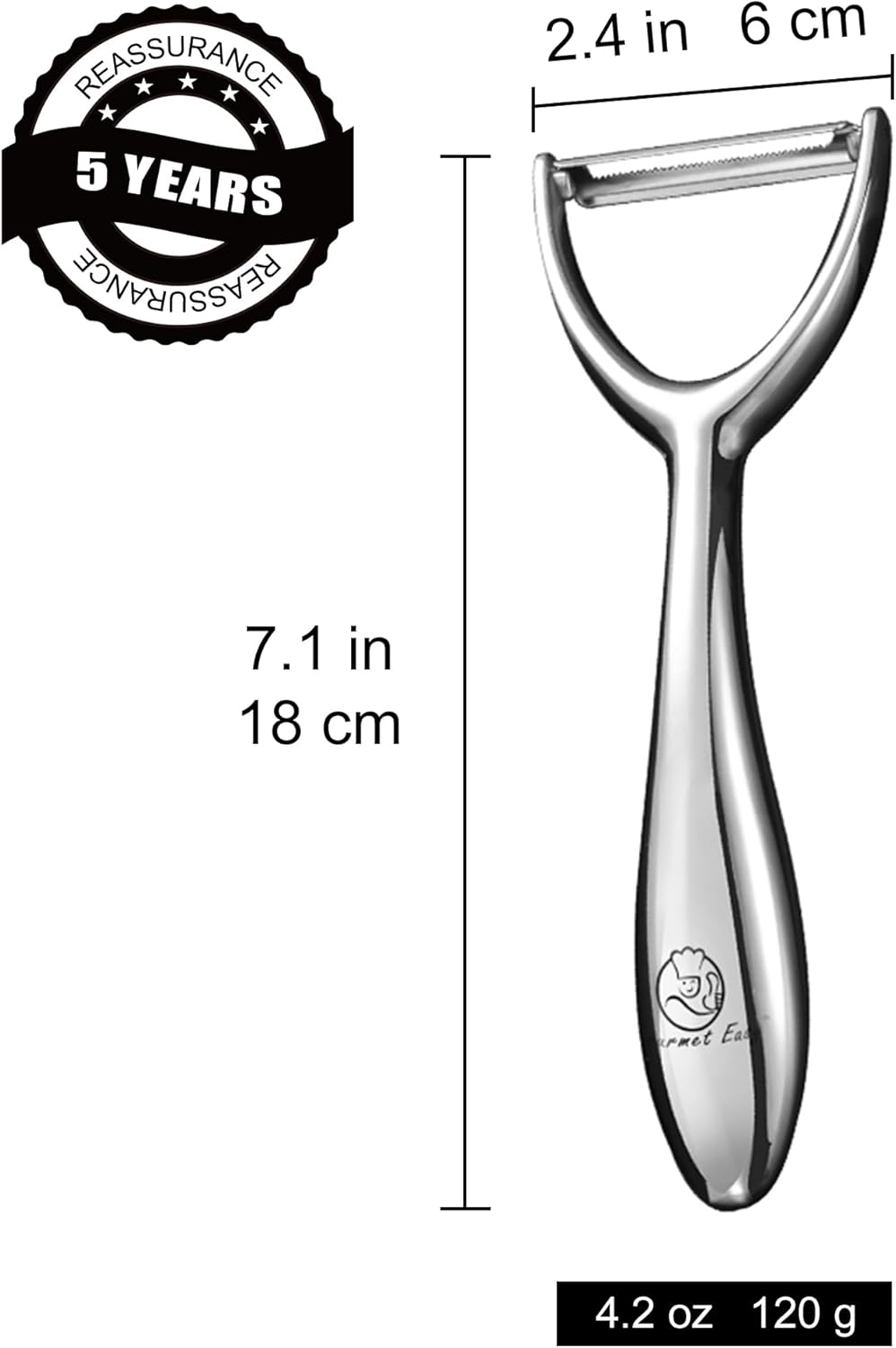 - GUARANTEED - For your peace of mind, we offer a 5 Year Warranty on our stainless steel vegetable peeler. If you find your product faulty during the warranty period, please reach out to out customer service.
