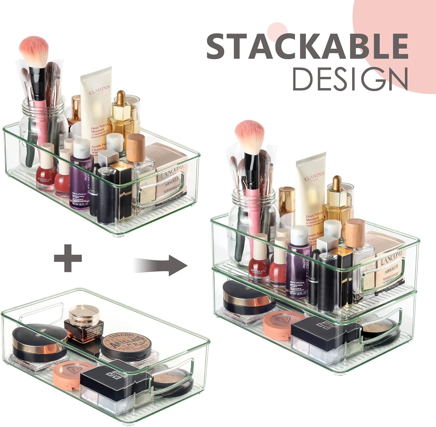 Hudgan 8 PACK Clear Stackable Storage Bins, Straight Sides Plastic Organizer Bins for Kitchen and Pantry Organization, 4 Large and 4 Medium Sizes Refrigerator Fridge Organizers and Storage
