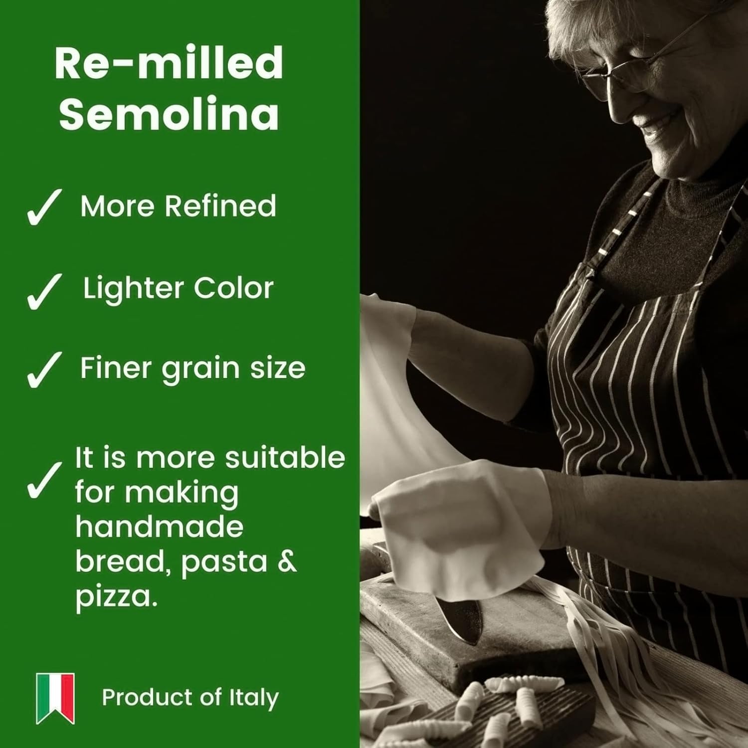 POLSELLI Italian Semola Flour, 11 lbs (5 kg), Fine Ground Semolina Rimachinata for Fresh Pasta, Bread, Grano Duro, Product of Italy, Durum Wheat, Unbleached, Natural, No additives, Index W240 (+0-5%)