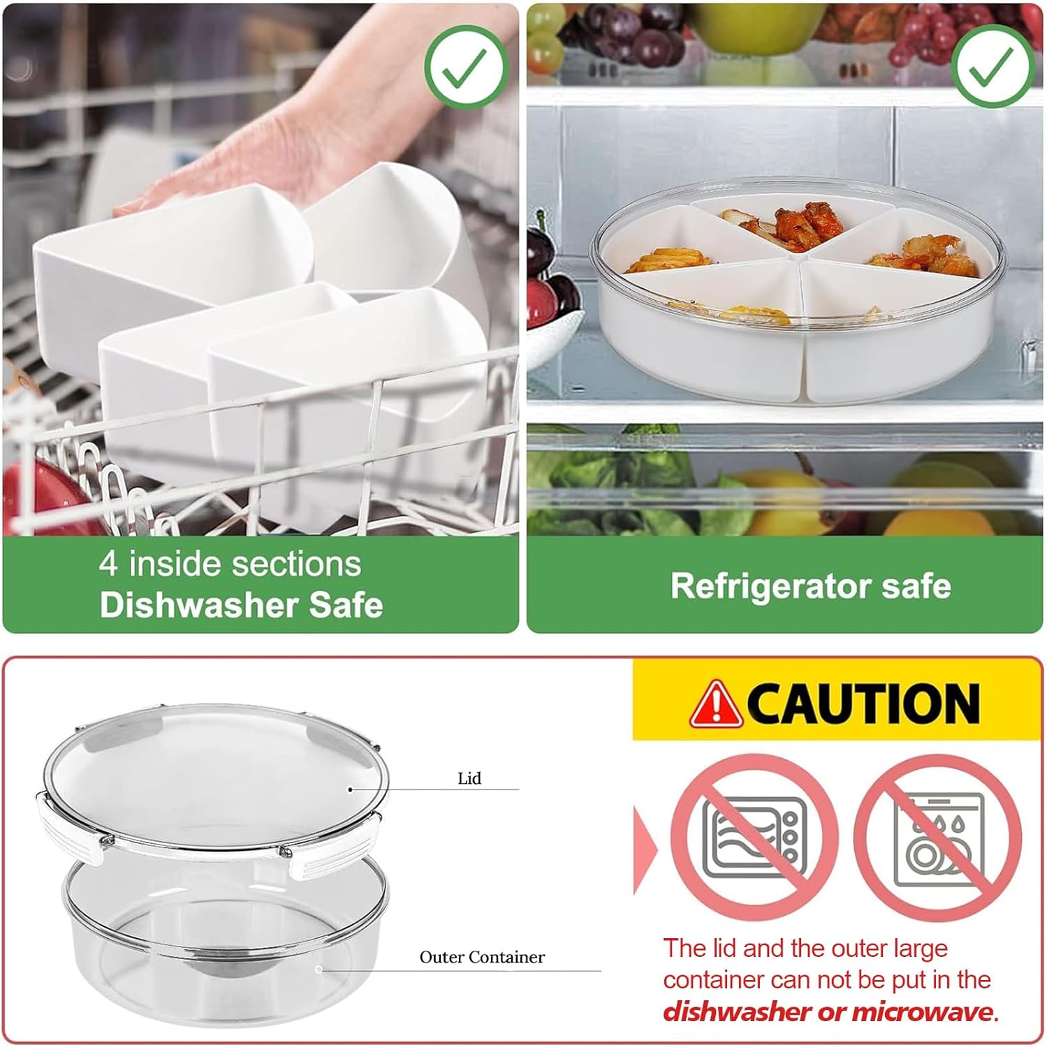 - 【Attention!!!】Only the large container outside and the lid are not suitable for dishwashers, please wash them by hands. It's really easy to clean.