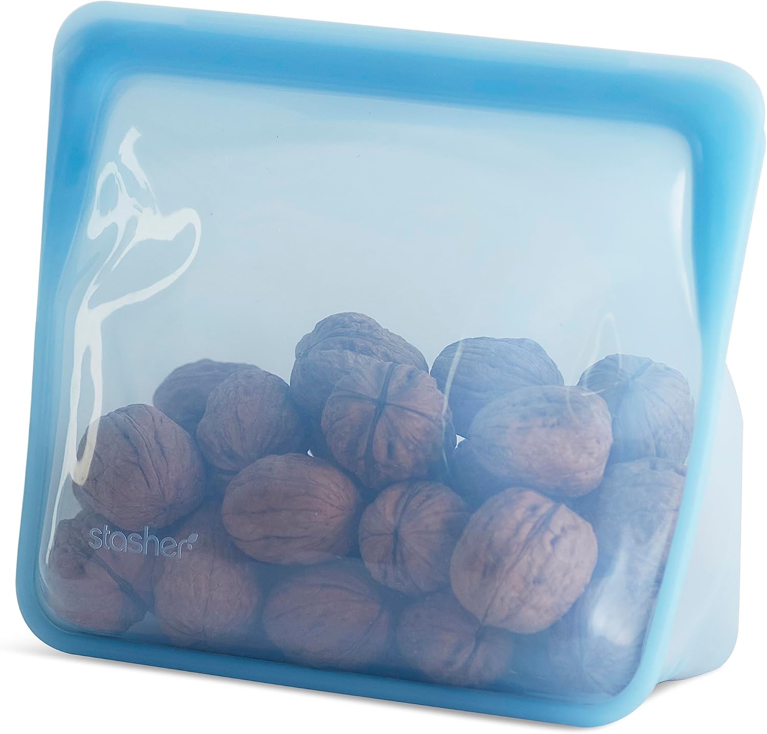 Stasher Premium Silicone Reusable Food Storage Stand-Up Mid Bag, Blue, Microwave, Sous Vide, Dishwasher, Oven and Freezer Safe, BPA Free, Leak-free, Eco-friendly, 56 Oz