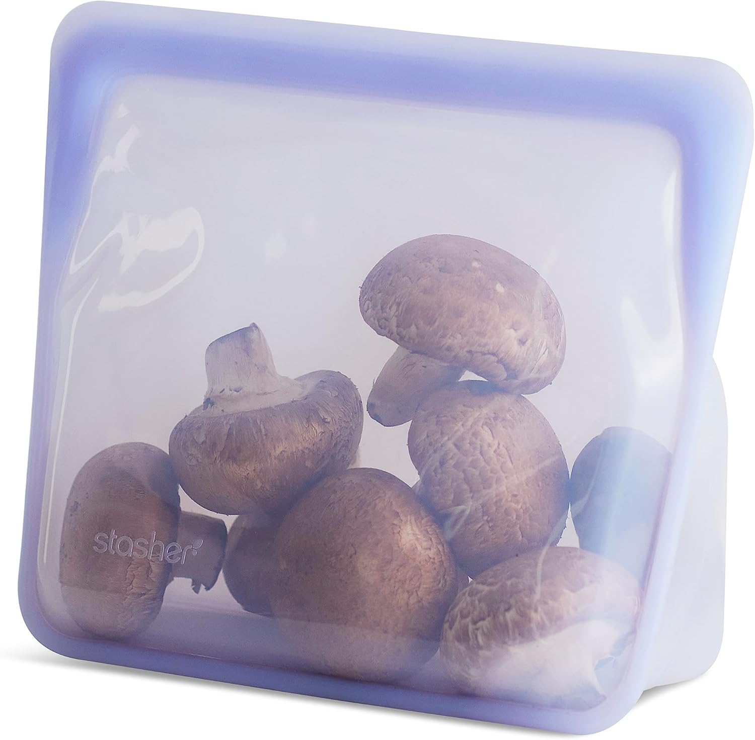 Stasher Premium Silicone Reusable Food Storage Stand-Up Mid Bag, Lavender, Microwave, Sous Vide, Dishwasher, Oven and Freezer Safe, BPA Free, Leak-free, Eco-friendly, 56 Oz