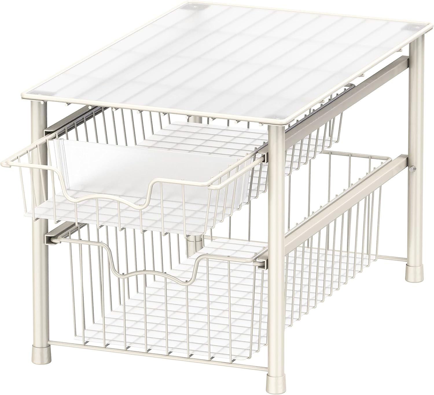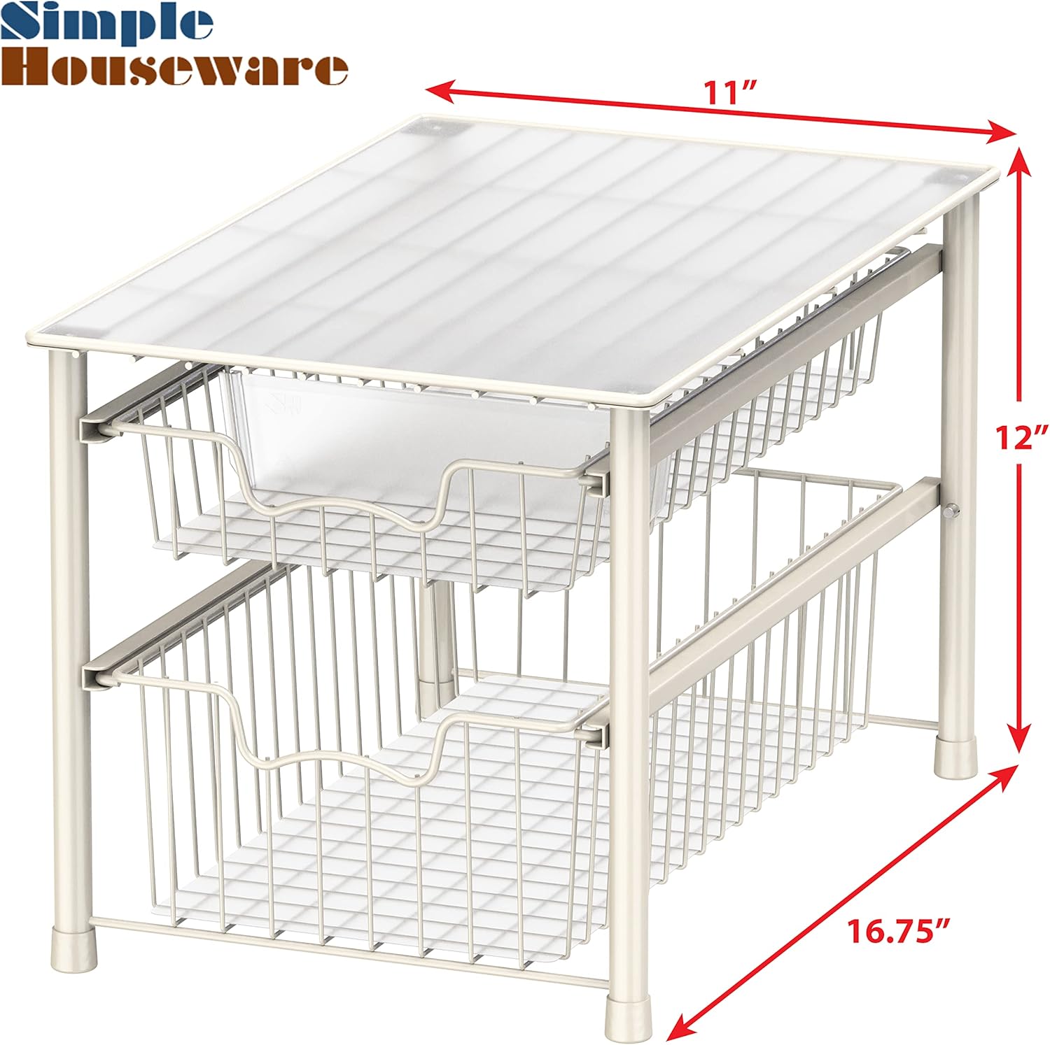 Simple Houseware Stackable 2 Tier Basket Drawer, White