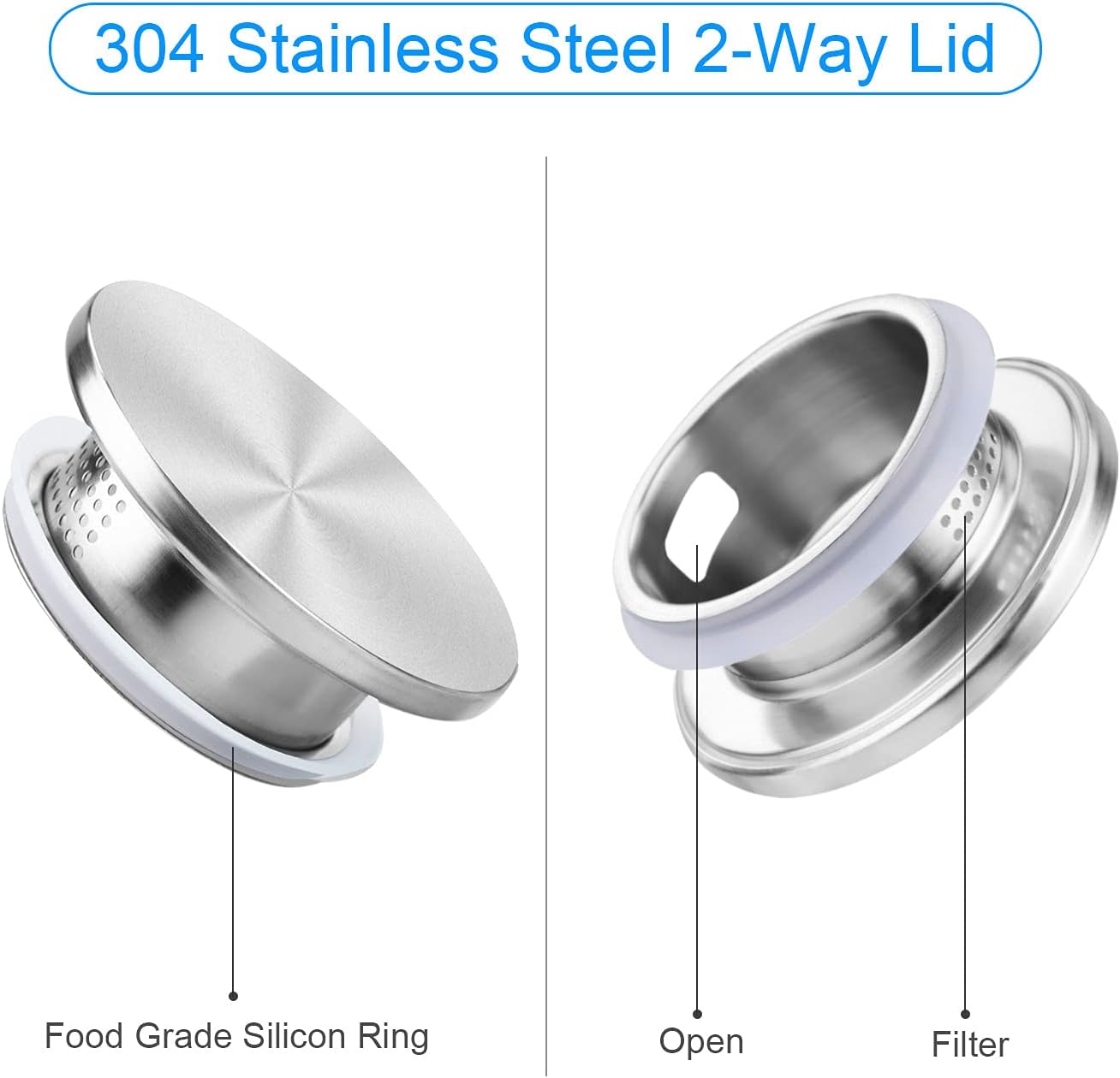 - Functional rust-proof stainless-steel lid: 304 stainless steel lid features 2-way outlets with large holes and small holes for filtration. Itβs quite multi-functional for family use. The food-grade rubber ring makes sure the lid is tight and does not fall off while pouring.