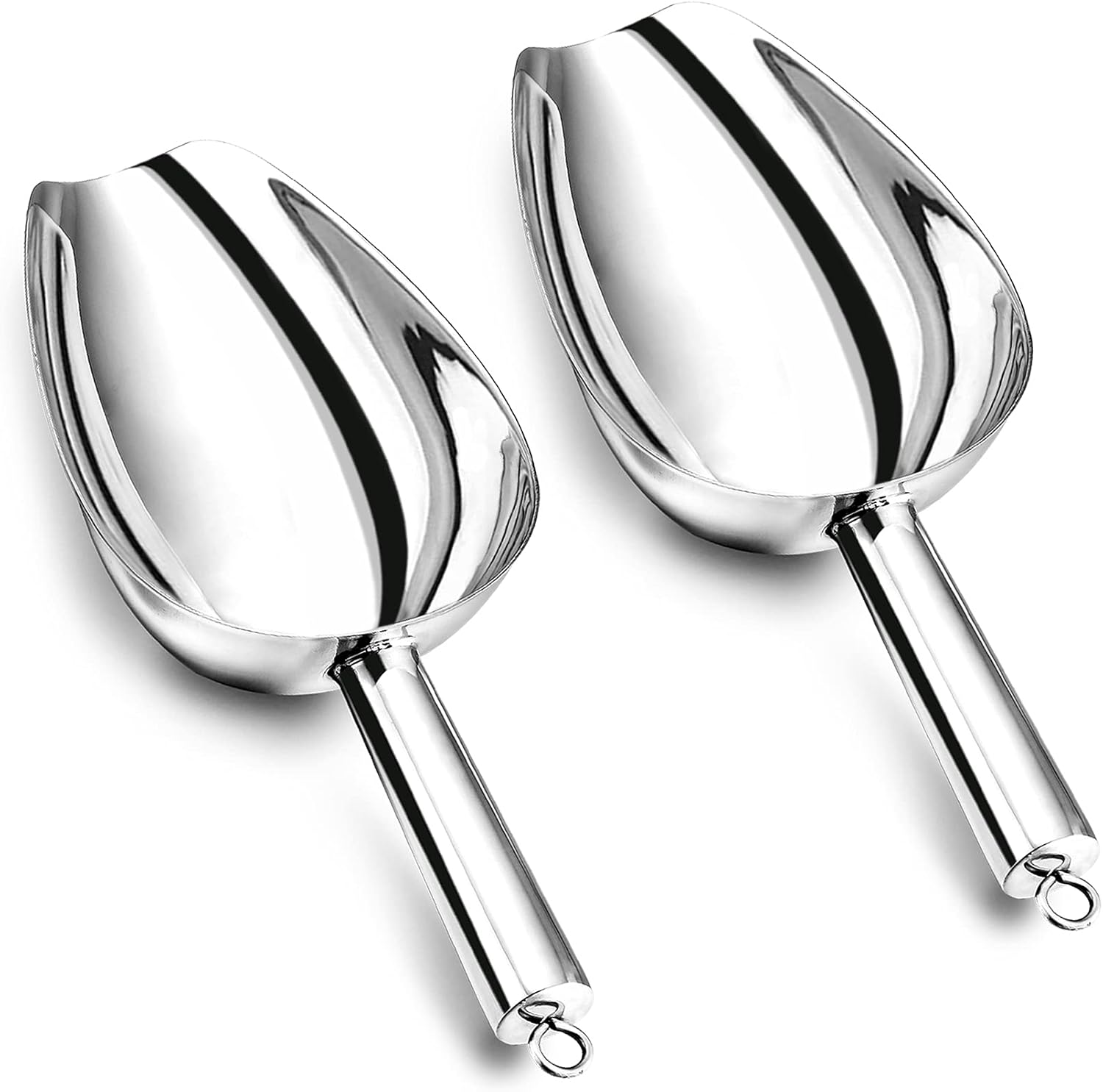 P&P CHEF Food Ice Scoop, Stainless Steel Scoop, Metal Candy Popcorn Flour Utility Scooper for Wedding Party Bar Kitchen Bath, Heavy Duty & Dishwasher Safe, (24oz, 2Pcs)
