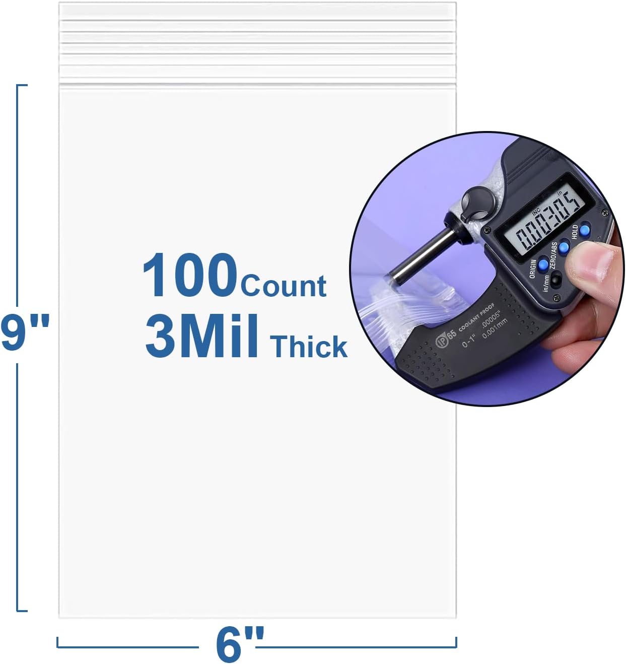 - 【Bag Specification】: 100pcs 6"x9" Clear thick 2.4 mil zipper bags. The zip bags are thickened to 2.5 mil (one-side), heavy-duty and durable. While most of the bags of market are 2 mils commonly.
