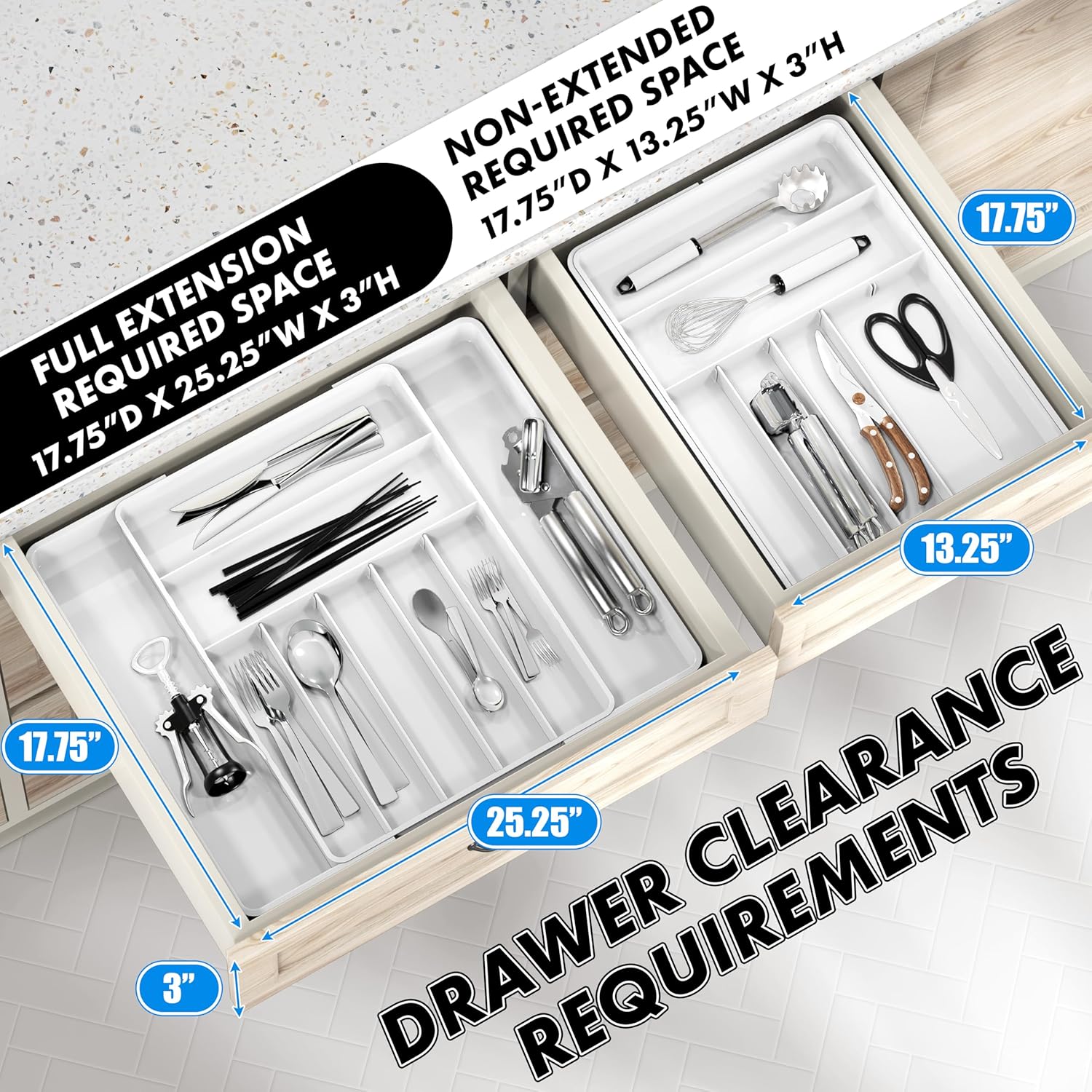 Simple Houseware Expandable & Adjustable Cutlery Drawer Organizer - Large Utensil and Flatware Tray for Kitchen Drawers, White