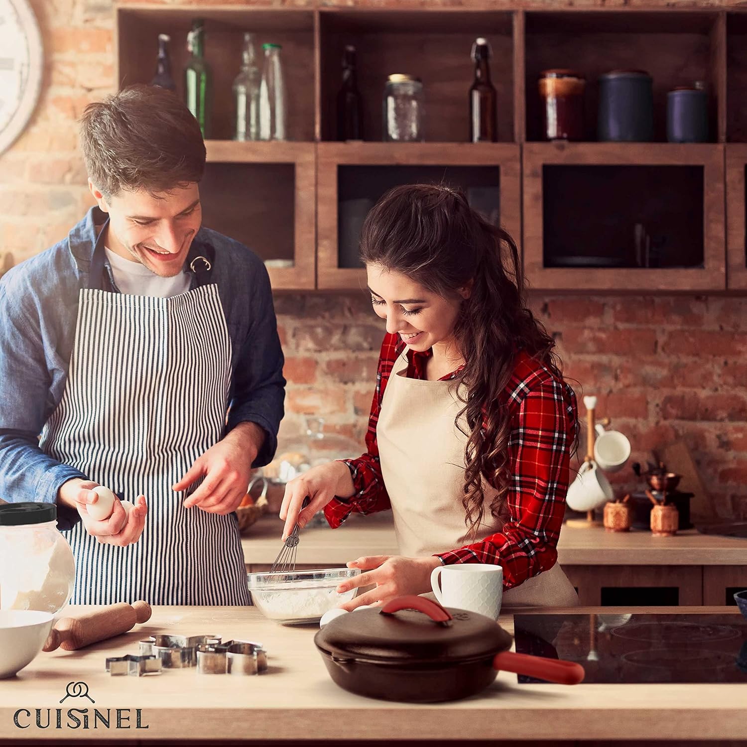 - TRUE COOKING VERSATILITY β The Cuisinel cast iron skillet pan can be used for frying, baking, grilling, broiling, braising, and sautΓ©ing meats, vegetables and more!