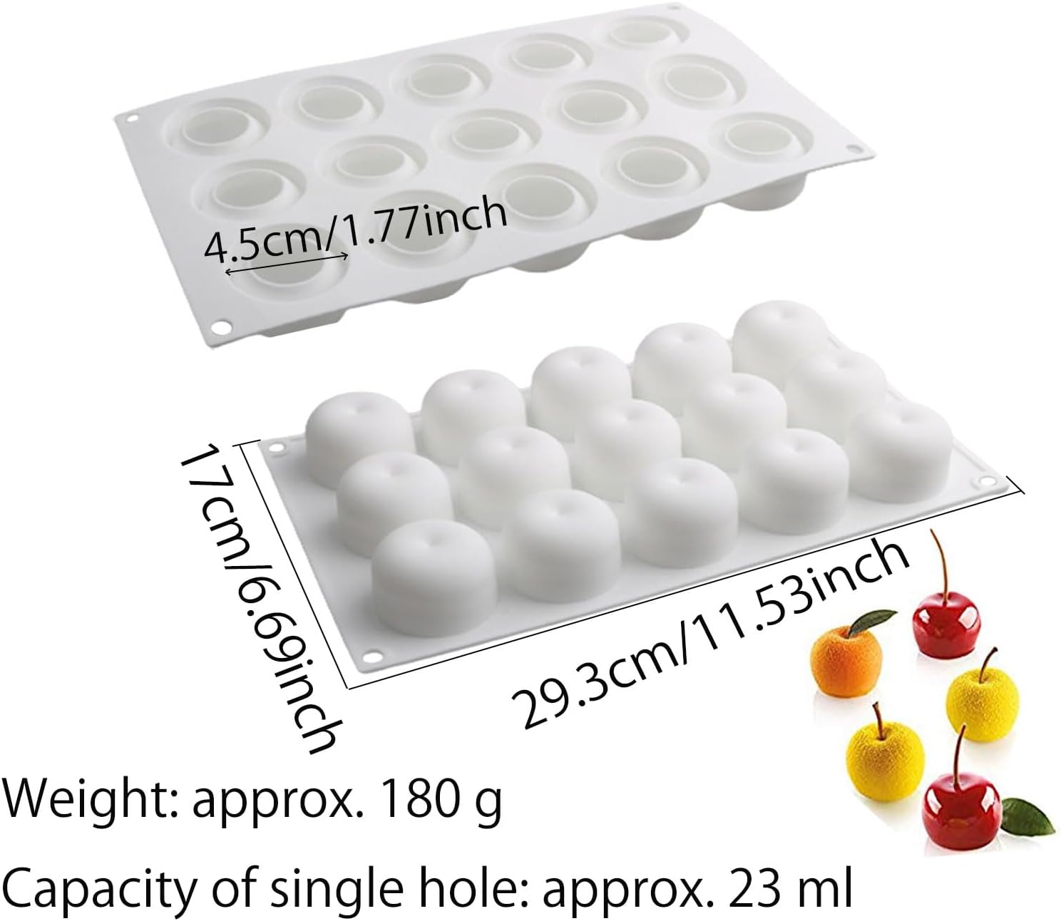 OCPO KITCHEN Apple Silicone Mold for Baking Mousse Cake, Candy, Chocolate, French Fruit Dessert, Pastry, Cupcake, Ice Cream, Pudding, Cake Decoration Mold, 3D Apple Shape (15-Cavity)