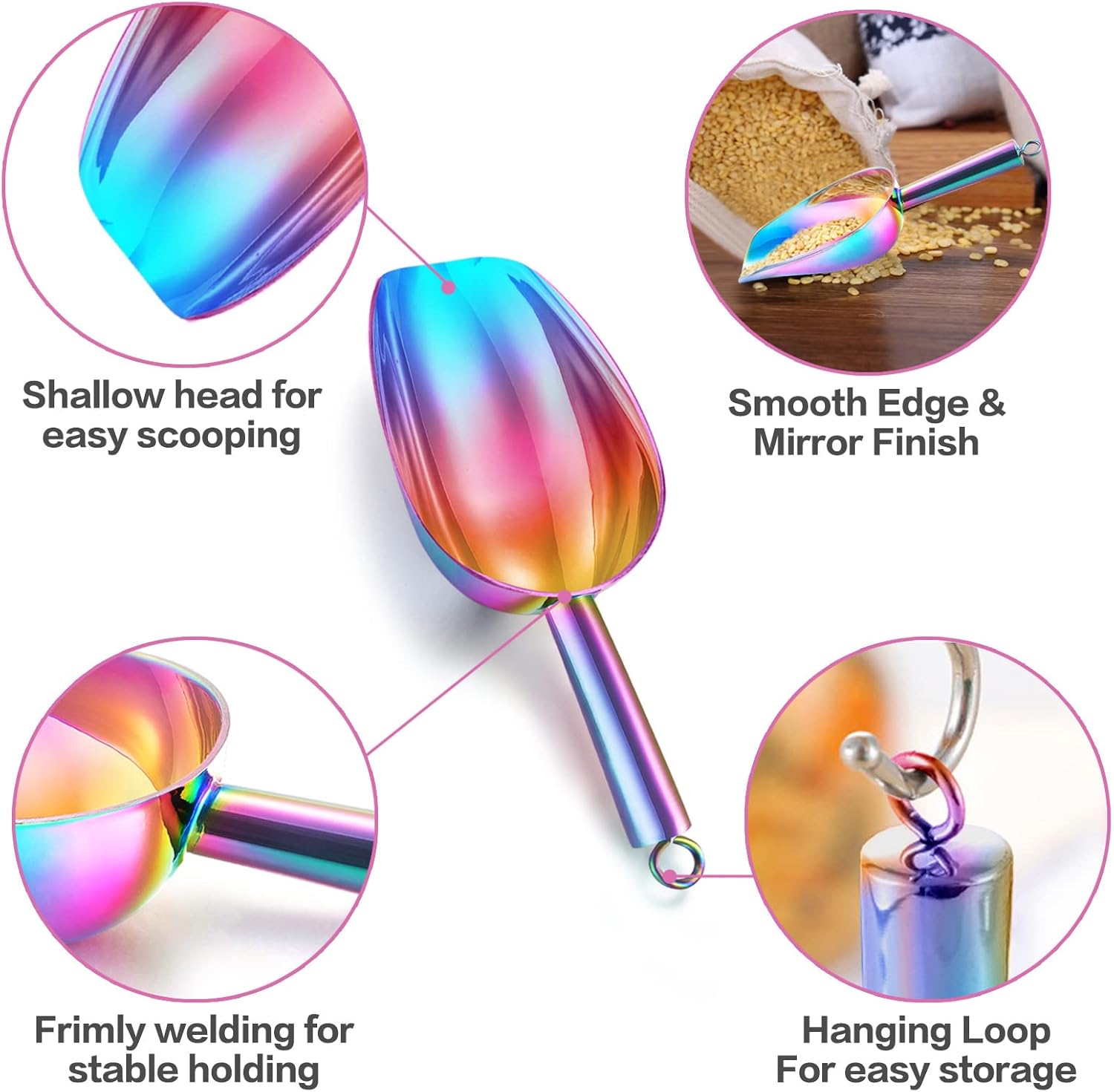 TeamFar 5oz Ice Scoop, Stainless Steel Food Scoop Metal Ice Scooper for Kitchen Bar Party Wedding, Heavy Duty & Sturdy, Easy Storage & Versatile, Mirror Finish & Smooth Edge, Colorful
