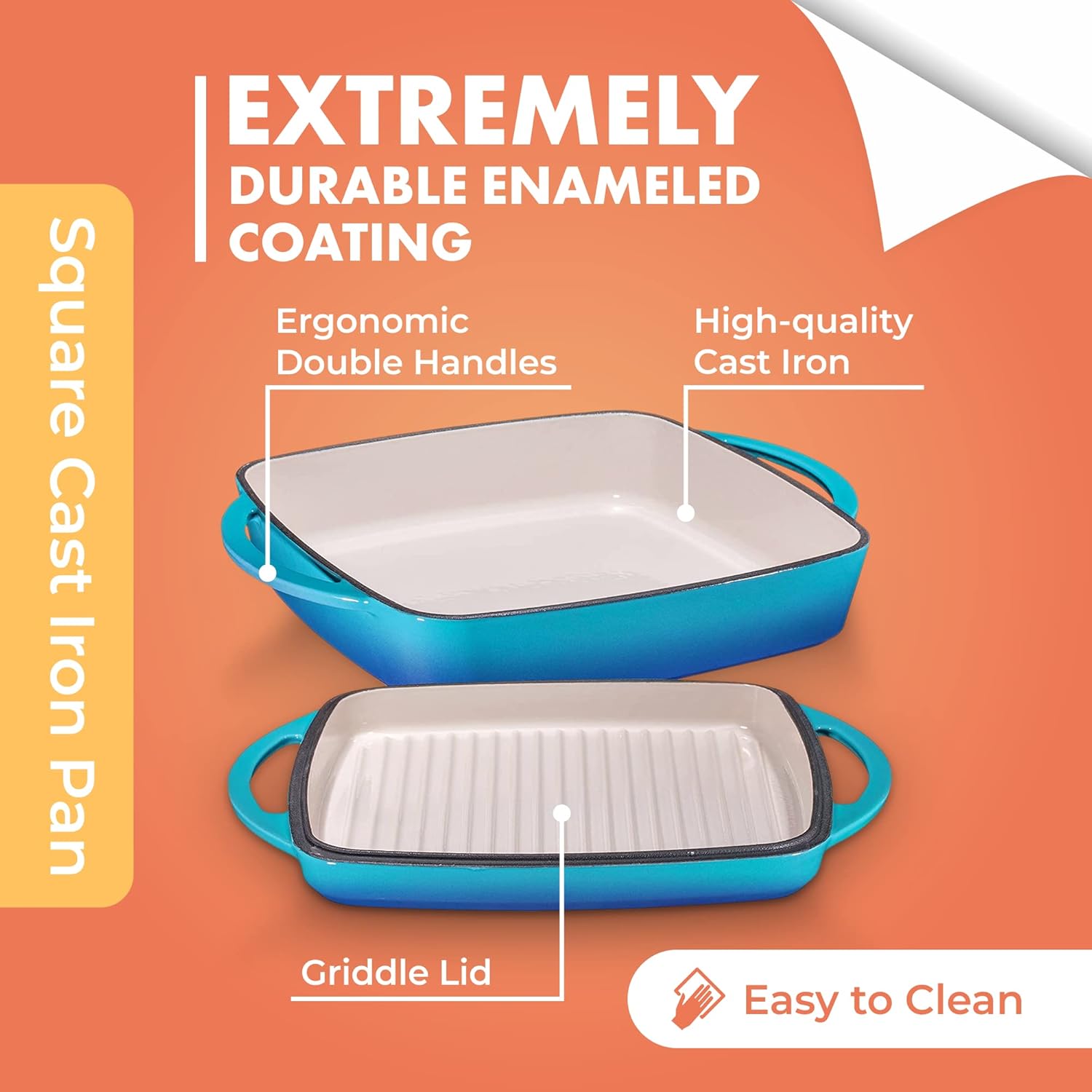 - Multi-Use Cooking Tool: This cast iron dutch oven is also a stovetop braiser and square cast iron pan with lid; perfect for roasting chicken, baking casseroles, or cooking one-pot meals with ease